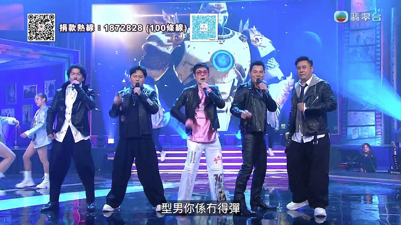 5位演唱《型男以上》以唐文龍打頭陣,幾下舞姿雖說不上勁舞,但台風十足。之後李思捷、黃智賢、麥長青、曹永廉等人依序出場,一邊揸咪唱歌一邊走位擺pose。眾人依舊沒有勁舞,但加上走位和運鏡,畫面顯然比一年前「初出道」時豐富了不止一個層次。當中,李思捷更擔任C位,「舞姿」比起其餘4位更風騷,十分之突出。表演的最後,麥包顯然忘記了走位,但終在多位性感Dancers陪襯之下,擺個型男中佬姿勢就順利完結!表演相當不錯!