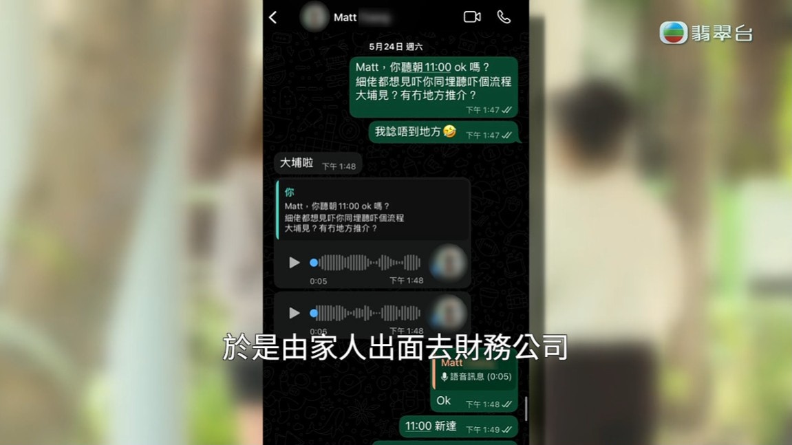 Dian的入息證明借不到30萬,所以由家人出面去財務公司借錢。阿Matt還表示會簽文件保障大家,並由公司法律部的劉律師跟進,令Dian和其家人放下戒心:「嗰3間財務公司係佢指定嘅,佢一定係要求嗰間財務公司啦,同埋嗰筆金額啦,仲有一定要係同一日去處理呢筆錢。」及後Matt又以資金周轉困難向Dian的家人再借12萬,兩個月後阿matt失蹤,令Dian家人損失10幾萬之外,還要負責30幾萬債務,Dian找劉律師,但原來連劉律師都是假的。Dian問劉律師全名及在什麼律師樓上班,劉律師都沒有給予答案,只告訴Dian他叫「Anson」。
