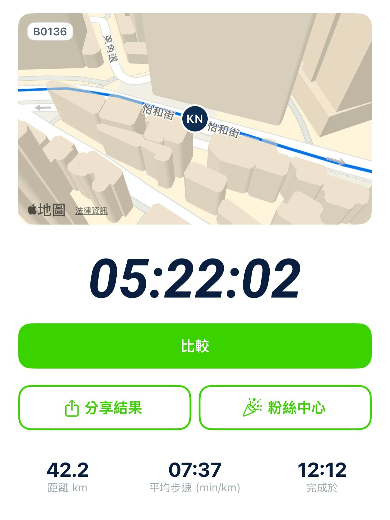 而坤哥亦在IG發文,表示:「5小時22分絕對唔係啲咩值得驕傲嘅成績,但係可以係自己人生蓋多咗一個印仔🥹同埋用腳遊覽完想全馬路線想講多句香港真係好靚!!年尾真係太忙到反面教材的我,半個月內只是跑了8k 15k 27k 12k就出發了,下次我會好好準備的🙏🏻🙏🏻」
