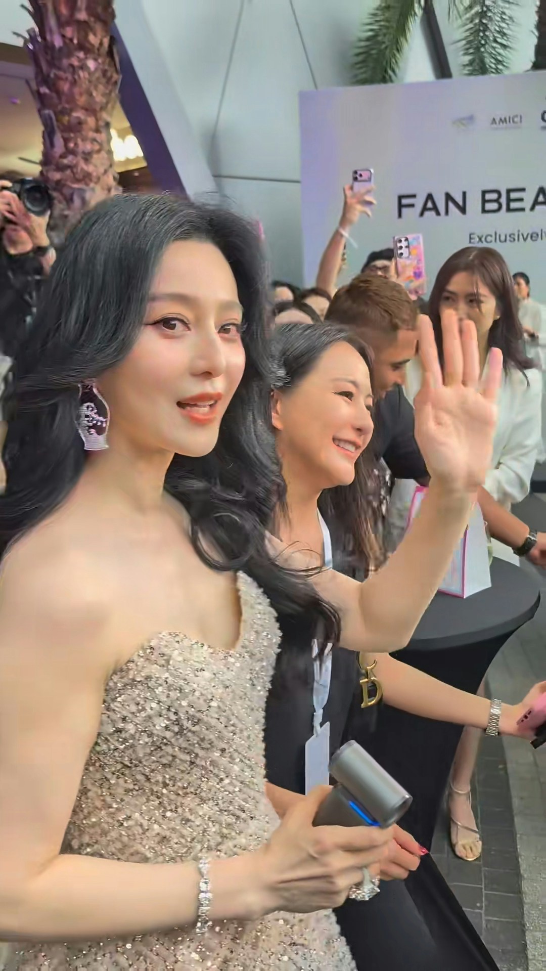 面對群眾的熱情,身經百戰的范冰冰全程表現從容,臉上掛著優雅笑容,並跟沿途群眾揮手打招呼。當日范冰冰放下一頭濃密長髮,配上精緻妝容,標誌性的立體五官及優越下顎線展露無遺,加上身穿一襲閃爆低胸裙,大騷白滑香肩,非常明艷照人,即便在路人「零濾鏡」的鏡頭捕捉下,皮膚依然白皙透光,狀態絕佳,完全看不出已經44歲。該網民見到范冰冰真人,也不禁慨嘆:「范冰冰太美啦~本人好美好白~仙氣飄飄~」。