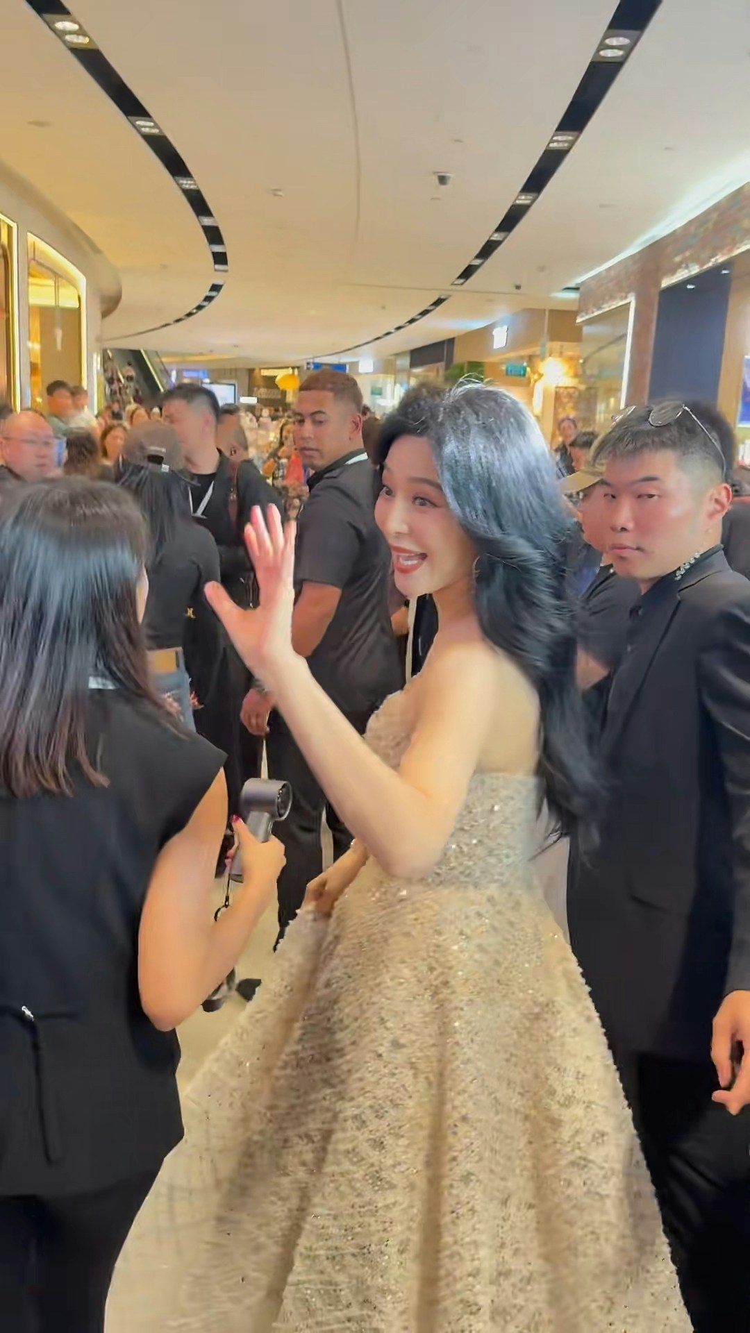 近日,有網民在社交平台分享范冰冰在新加坡出席商場活動的片段。片中所見,范冰冰一抵達現場隨即引來現場民眾「嘩嘩聲」起哄,紛紛舉起電話拍片、影相。大會亦嚴陣以待,安排現場保安和工作人員組成人鏈開路,將范冰冰重重包圍護送入場盡顯影后氣派,場面墟冚。