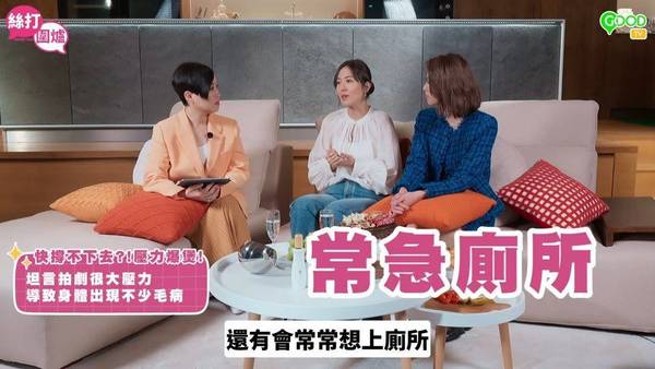 除咗壓力好大之外,我覺得身體真係差咗好多,呢兩年我係冇休息過,入行初期我試過一年(拍)四套(劇集),當時接受到。但近兩年再拍一年四套,我發現返唔到去個狀態。