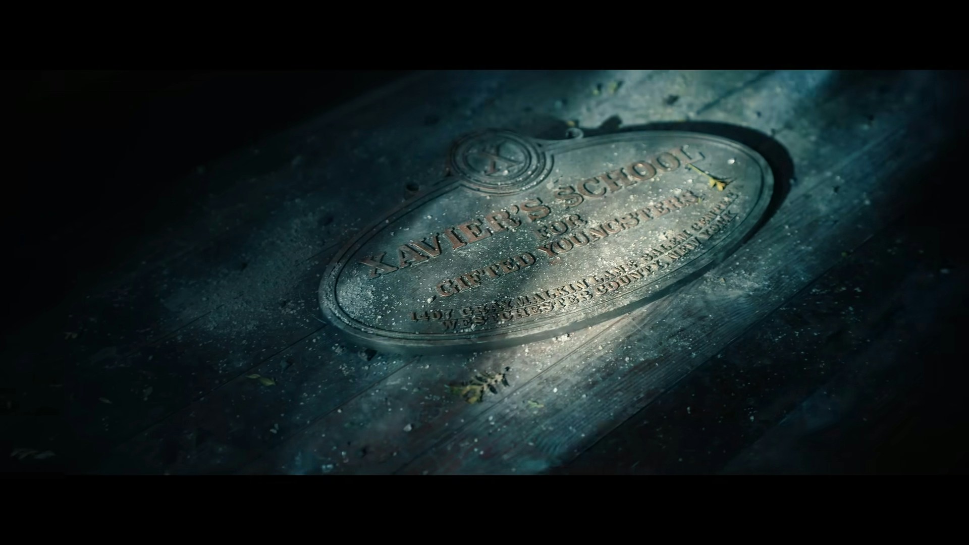 連X教授學校的名牌亦棄於地上。(《復仇者聯盟5:毀滅日》預告截圖)