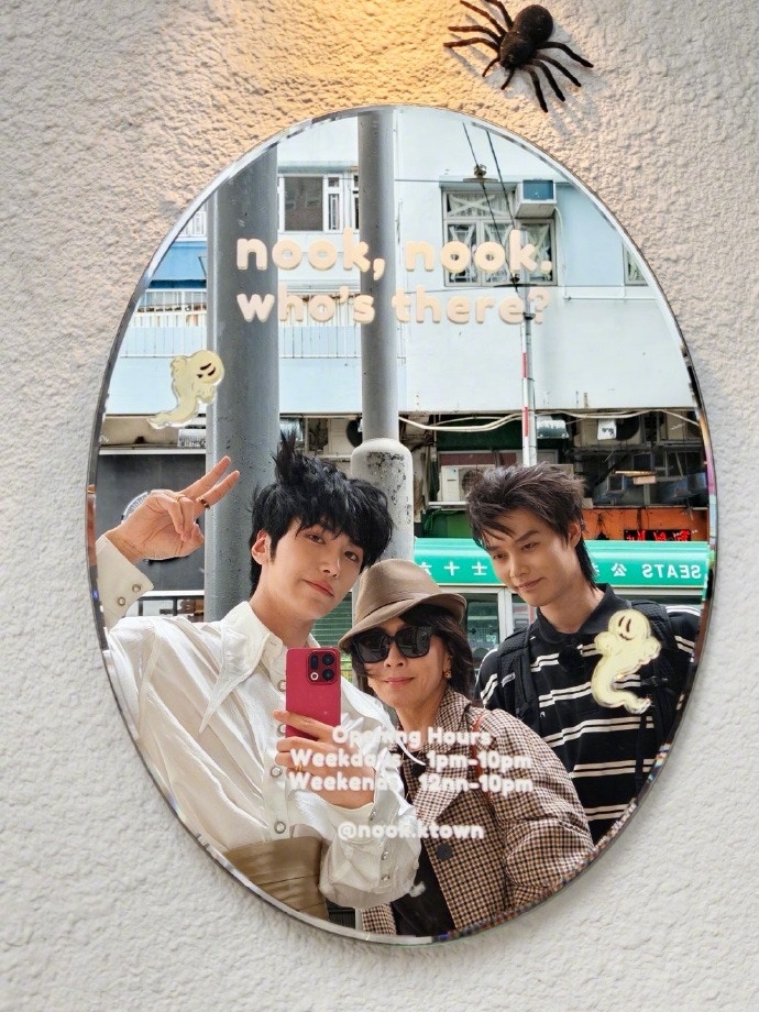 劉嘉玲與一眾影后們則圍繞在邵子恒身邊載歌載舞,並與他親密合照,場面既溫馨又熱鬧。(邵子恒微博圖片)