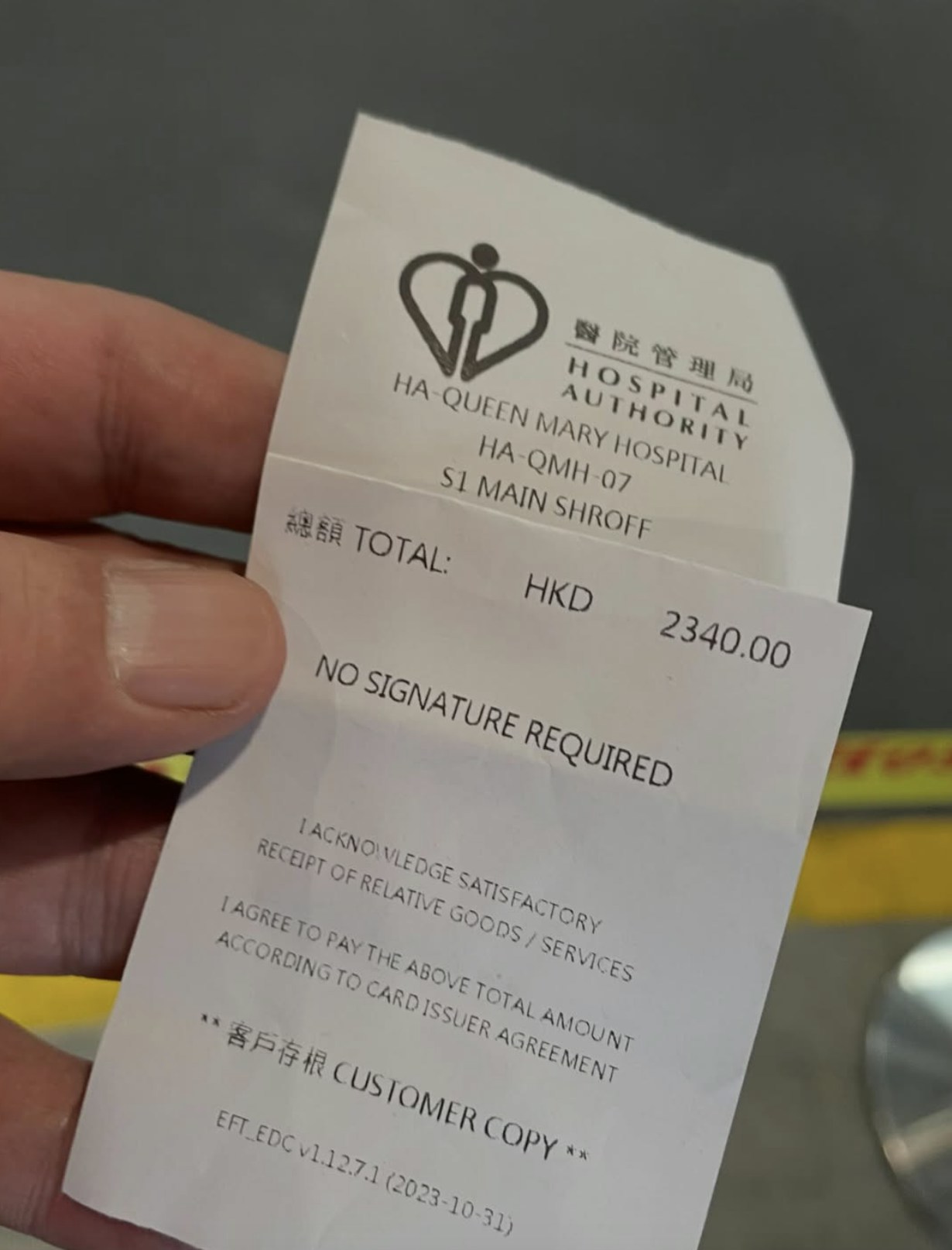 邱萬城上載一張醫管局收據。(IG@samuelyau)