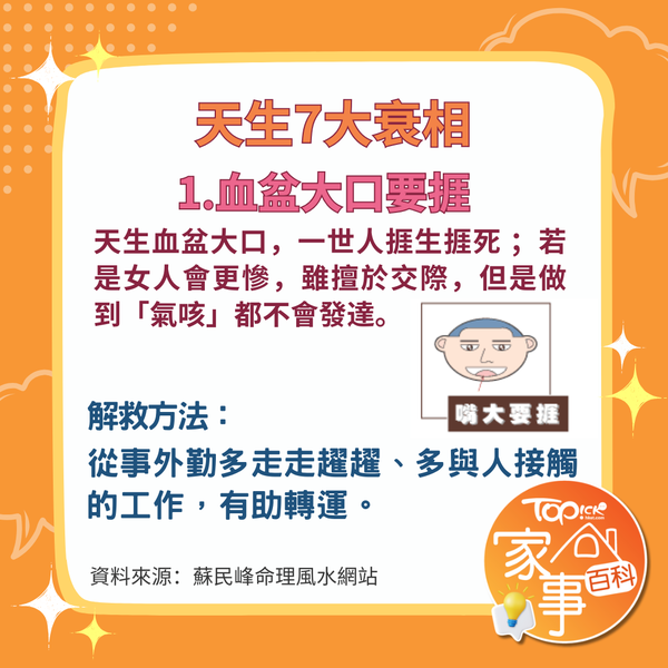 如果天生是血盆大口,一世人捱生捱死 ;若是女人會更慘,雖擅於交際,但是做到「氣咳」都不會發達。