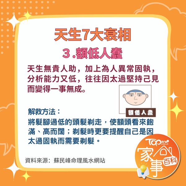 行衰運面相|3.額低人蠢 剃髮變醒目