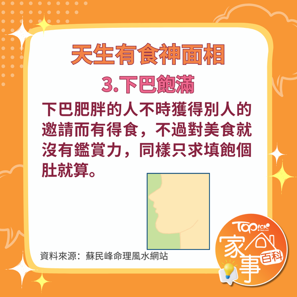 這種面相的人會偏食,專門選自己喜歡的食物吃,不過同樣對食物沒有鑑賞能力。