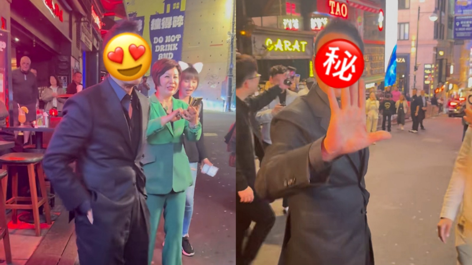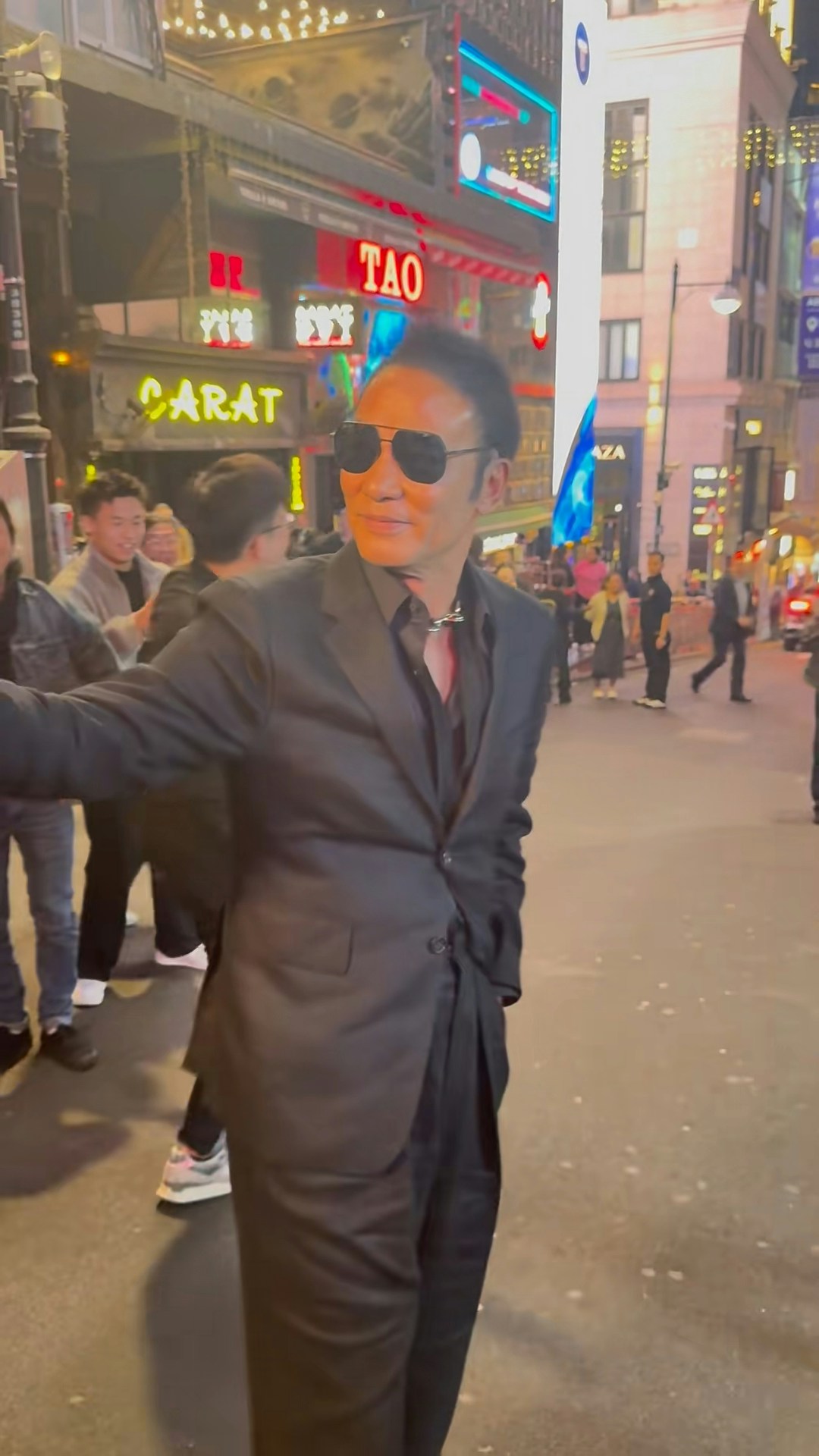 從網民分享的片段可見,任達華當晚身穿一套剪裁極其貼身的西裝,身形fit爆,更刻意解開領口兩粒鈕扣,不羈之中帶點霸氣。雖然他戴著墨鏡,但仍被一眼認出。而出名親民的任達華,禮貌地邊行邊跟大家握手兼「Say Hello」,即使近距離被影依然笑臉迎人,毫無巨星架子,甚至有現場女士難掩興奮,以「高8度」聲線大喊:「我愛你,華哥!」可見任達華雖然已經70歲,但魅力依然沒法擋。