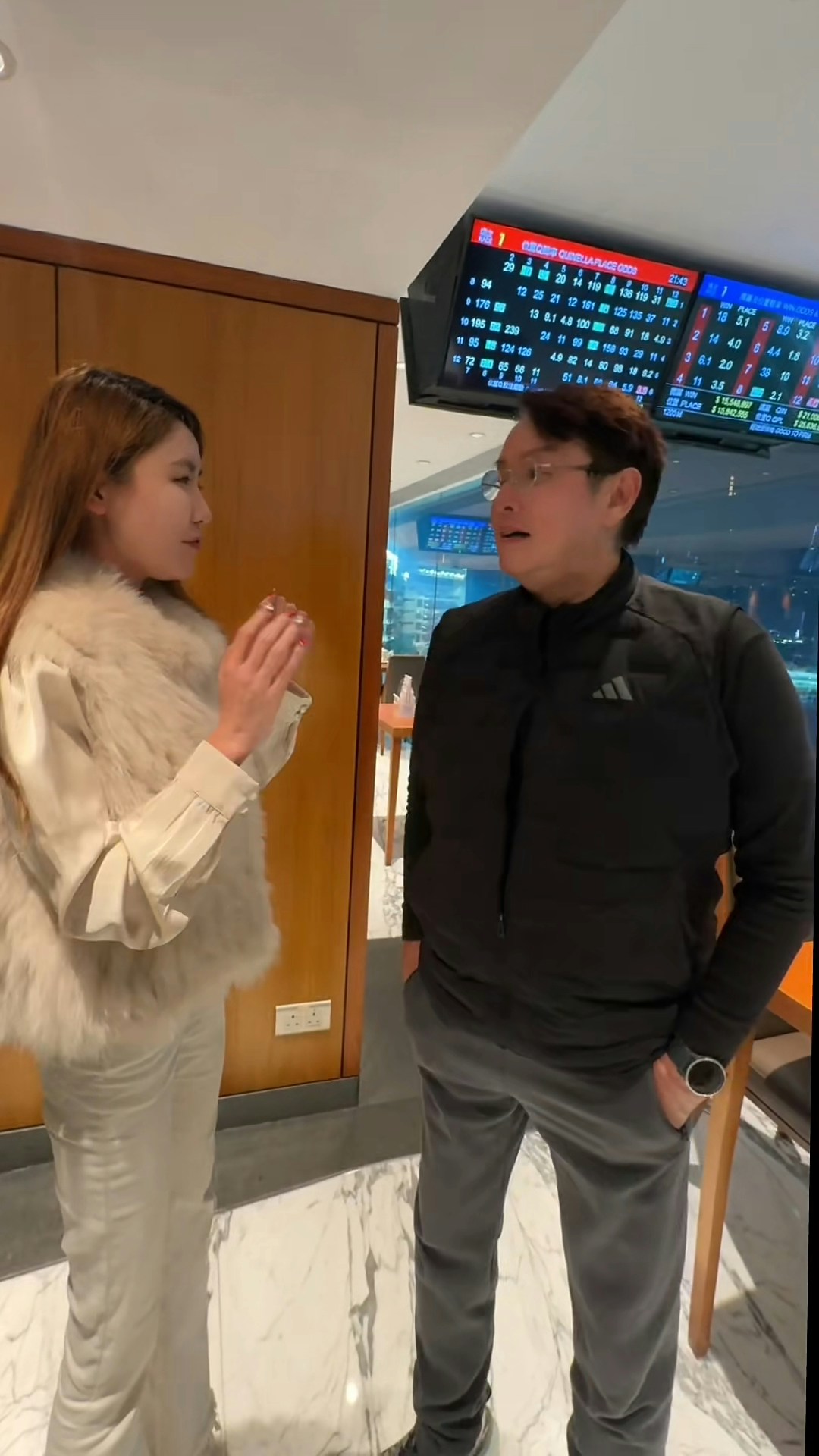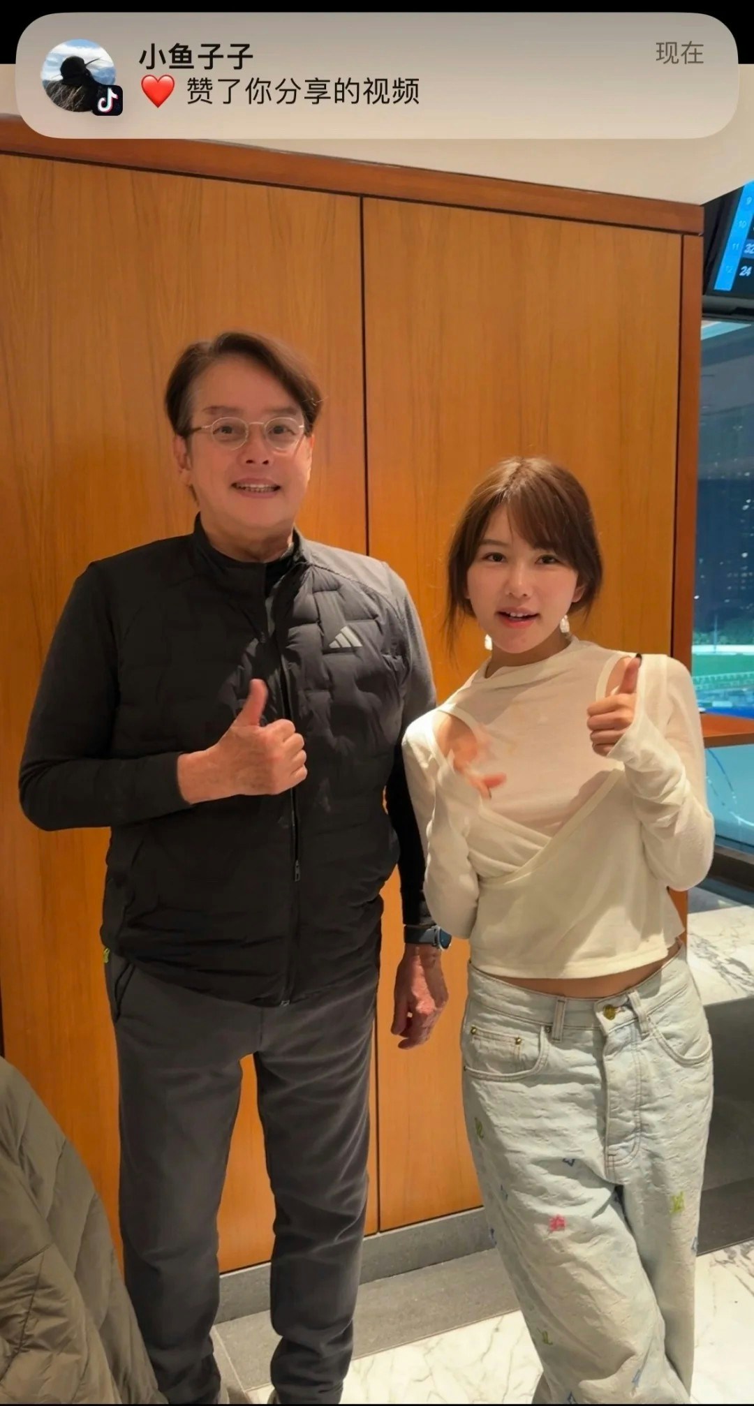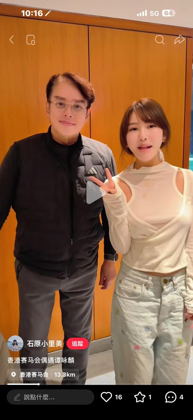 日前有網民於社交網分享了於馬場偶遇譚詠麟的合照,發文寫道:「在香港賽馬會偶遇譚詠麟和陳百祥啦」,隨即惹來熱議。從博主分享張她與譚詠麟的影片和合照可見,75歲的譚詠麟驚現極致回春,肌膚變得皮光肉滑,看來白了不少,成個樣後生了起碼40年,與平日見到的他截然不同。不少網民都大表震驚,紛紛留言表示:「我的天,拉了十級美顏嗎」、「75歲的校長給你美顏成30歲的帥哥」、「P到校長,20歲」、「四十年前既校長」、「比四十年前還要嫩」。而博主在另一個post就貼出了她與譚校長的另一張合照,還有她與陳百祥的合照,在沒有開那麼強勁的美顏之下,譚詠麟的樣子就真實自然得多,不過依然是比他的真實年紀年輕不少,也是回春了。