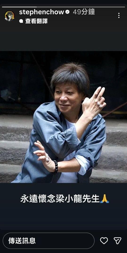 當梁小龍傳出死訊後,周星馳亦有在社交平台貼出對方照片悼念,簡單留言:「永遠懷念梁小龍先生」(IG@stephenchow)