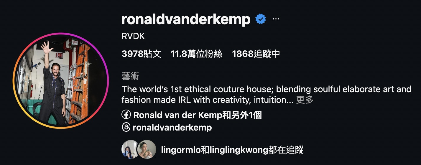 Ronald van der Kemp在國際間甚有名氣。(IG截圖)