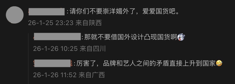 事件持續發酵,有網民力撐楊穎無辜,因為服飾和工作安排都是由造型師和經理人公司負責,也有人表示,設計師不應介意,更說:「請你們不要崇洋媚外了,愛愛國貨吧」、「你可以說“未經我同意不能用於商業用途”,但是陰陽怪氣說cheap shoes並不能襯托衣服的高級,ugly dress罷了」、「有人給你穿就不錯了」。
