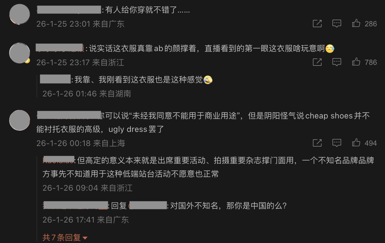 內地網民批:ugly dress罷了