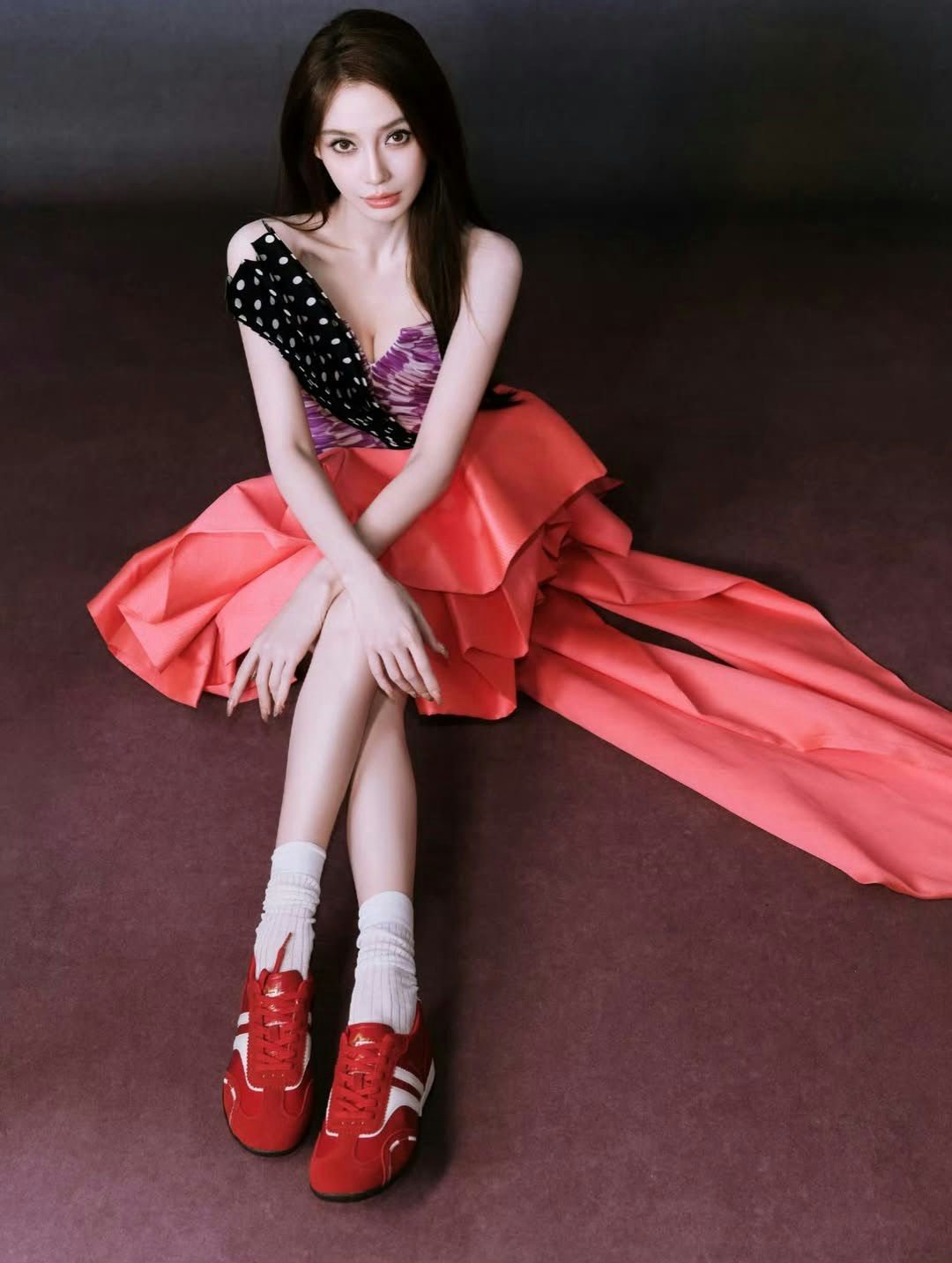 楊穎Angelababy着名師設計晚裝影內地波鞋品牌代言宣傳照。(IG圖片)