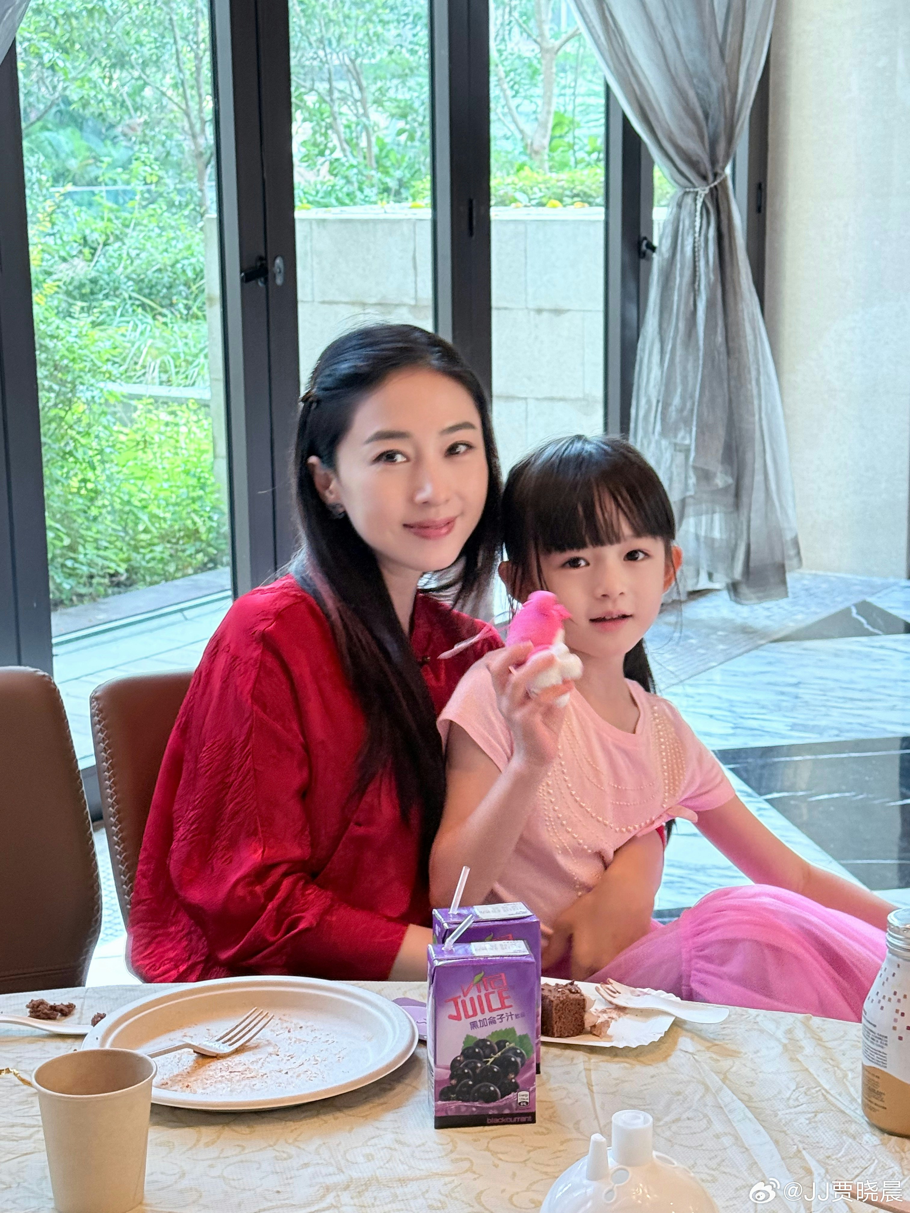 JJ賈曉晨與細女小飯團一同慶生。(微博:@JJ賈曉晨)