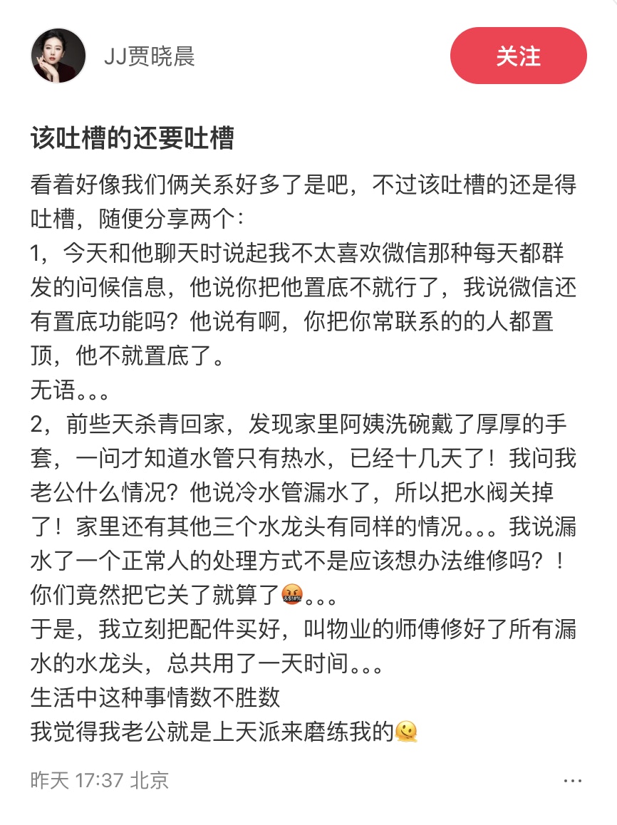 JJ又發文投訴老公。(小紅書)