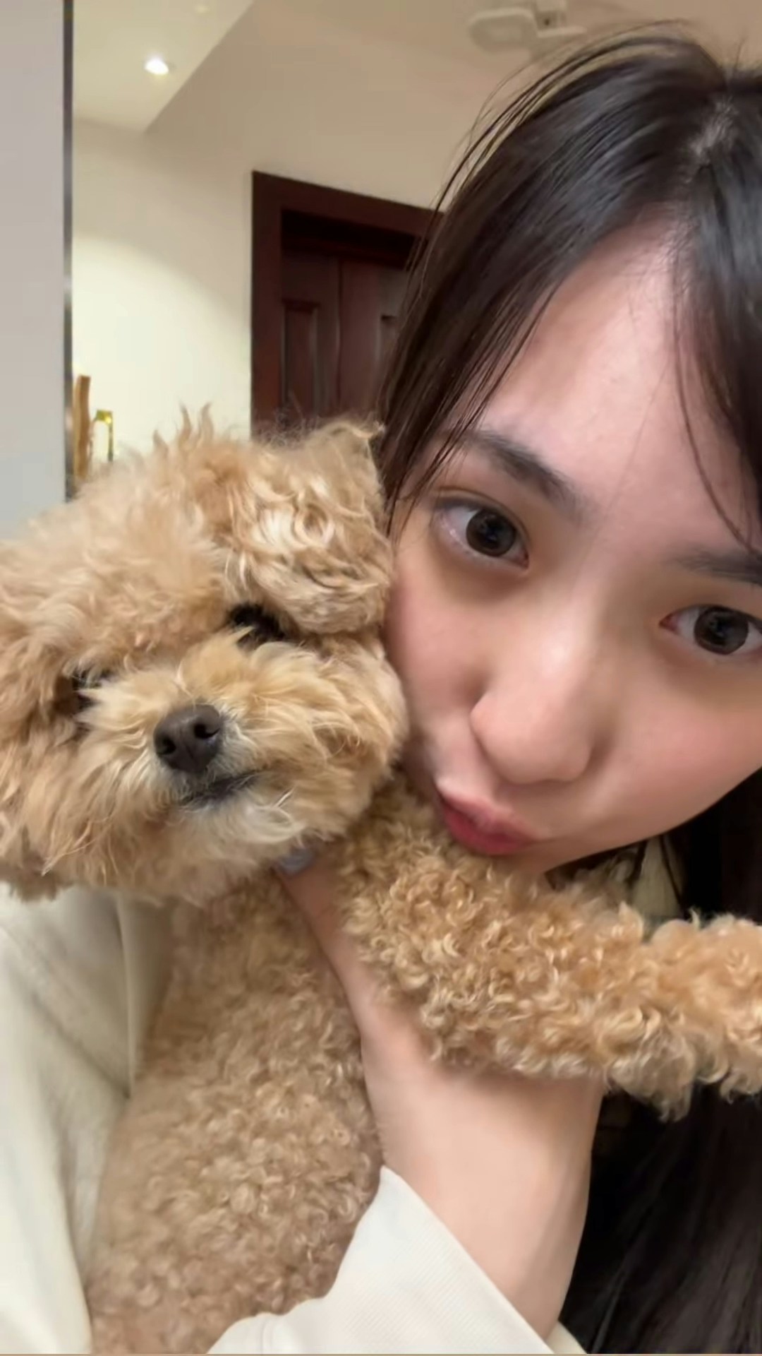鍾柔美亦有在與粉絲的TG群組跟粉絲「米粉」們講新年快樂,她自拍了一條片,樣子精神、面露笑容,似乎心情大靚。(網上圖片)