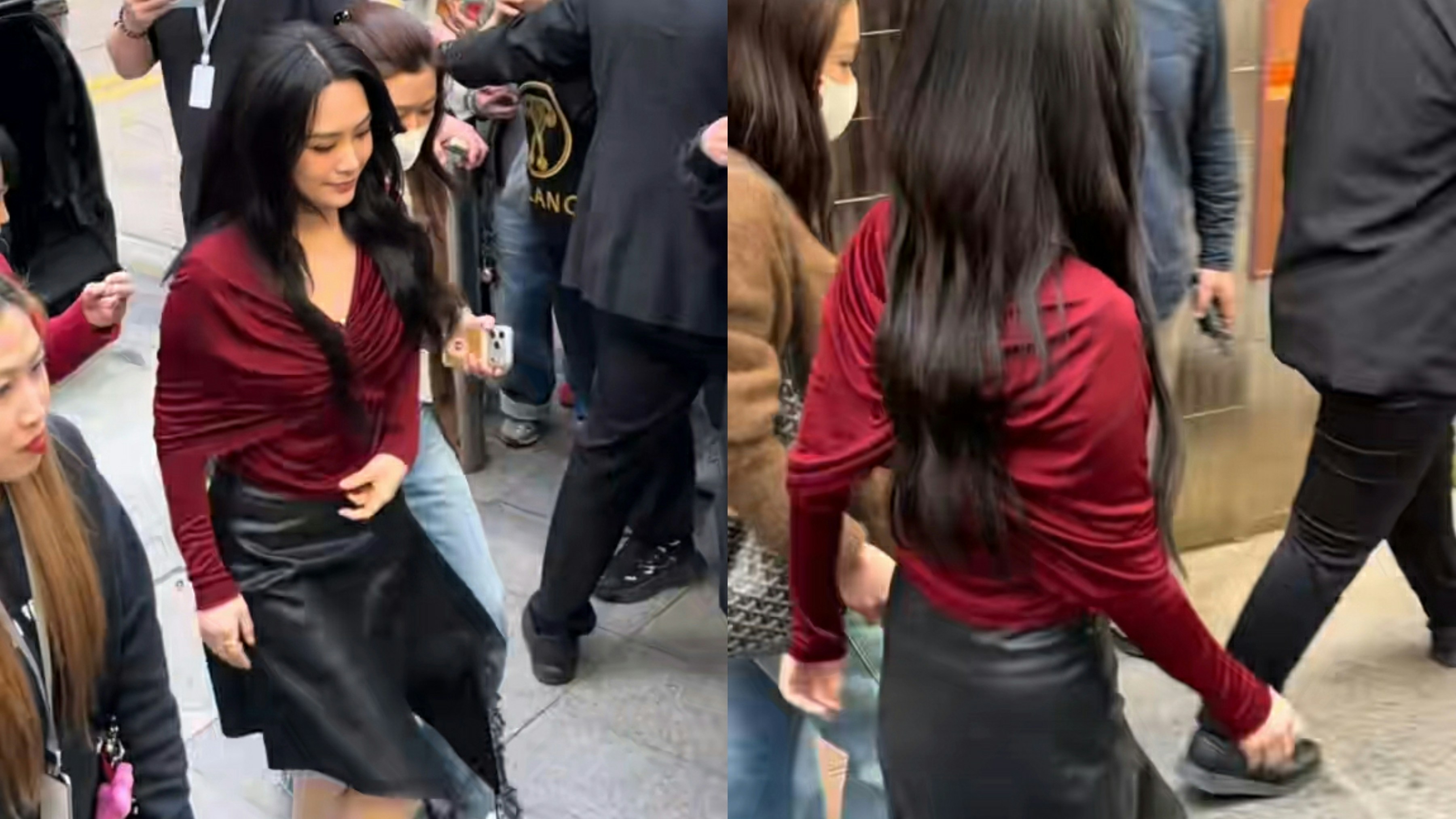 在其中一段網民上載的短片是阿嬌乘車抵達活動會場的一刻,阿嬌從車上走出來,慢慢步向會場,期間她有微笑跟粉絲揮手打招呼,表現親切友善。片中可見,原相機拍攝的阿嬌依然十分靚女,基本上與她官方發的精修圖無分別。而去年成功瘦身後的阿嬌一直keep住Fit爆身材,當日在路人視角下一樣是好纖瘦,即使上鏡了也沒有顯胖,真的比前瘦了很多。有網民對於阿嬌瘦了一圈大表驚訝,留言問道:「這麼瘦,之前不是很胖嗎?」、「天啊,時肥時瘦,好佩服她」、「真好看,這是沒有美顏濾鏡拍的」。