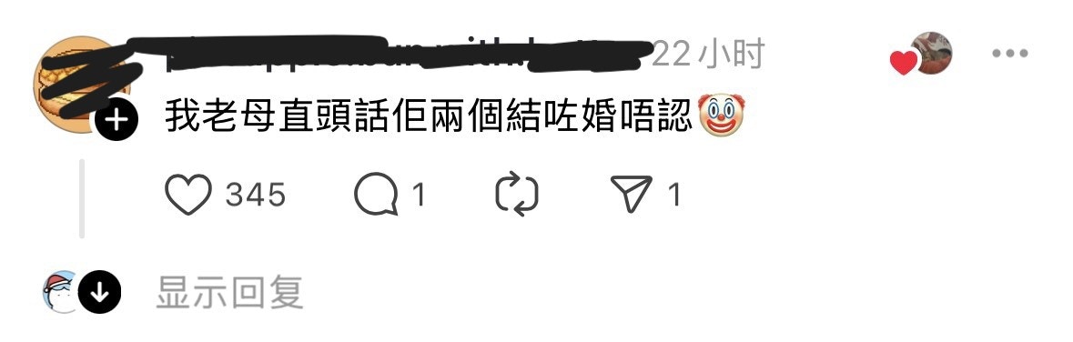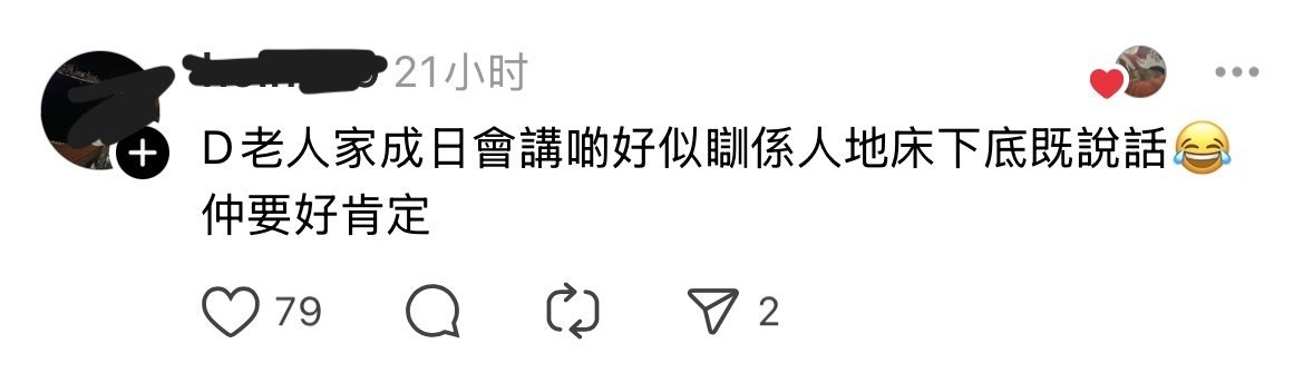 貼文下方引發大批網民共鳴,紛紛分享自家長輩的「驚人言論」。有網民表示:「我老母直頭話佢兩個結左婚唔認」、「我媽仲話佢地一早結左婚生左仔」。不少人笑指老人家說話語氣非常肯定,「成日會講啲好似瞓喺人地床底既說話」。