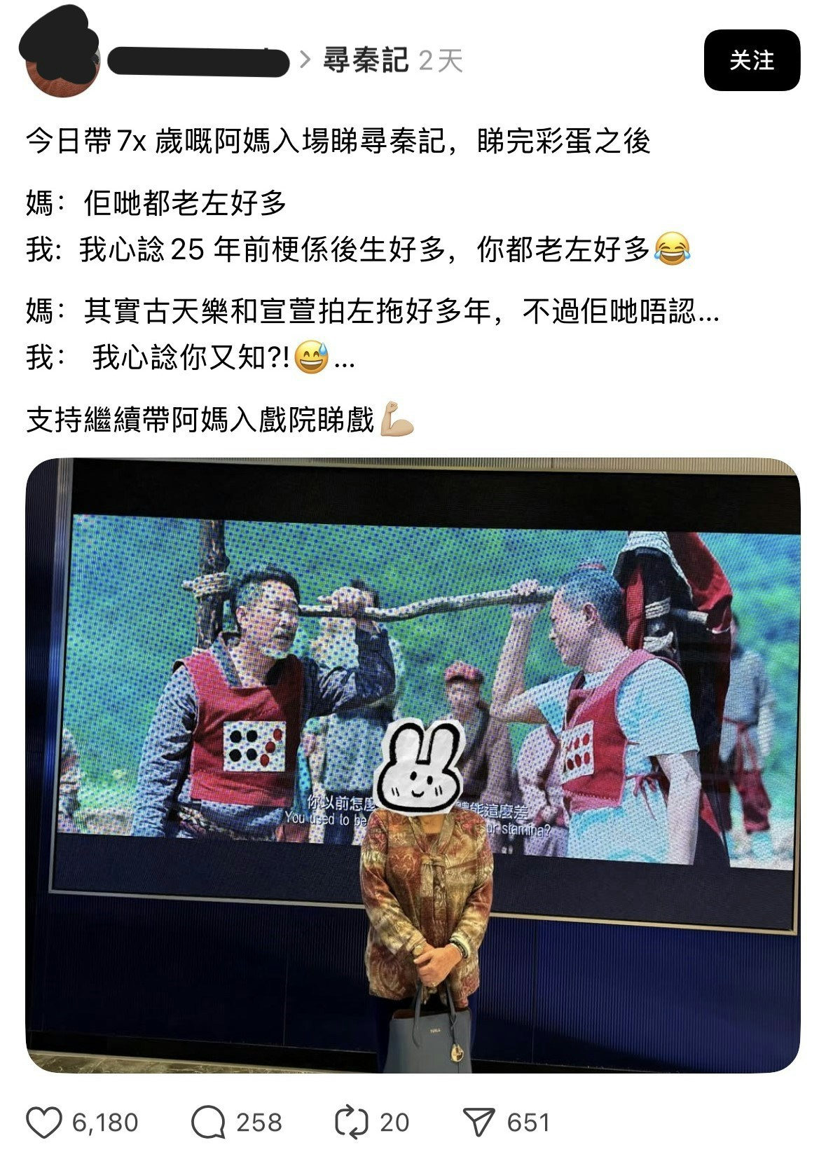 帶七旬母睇《尋秦記》驚爆「地下情內幕」