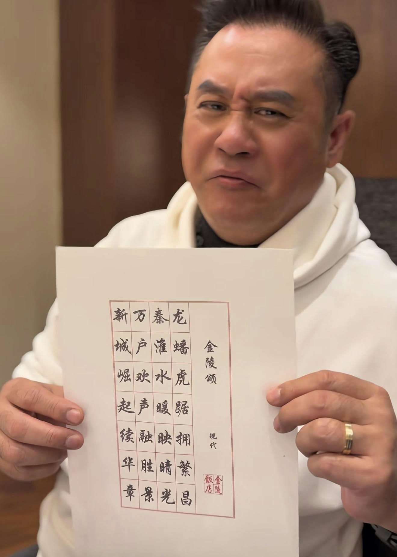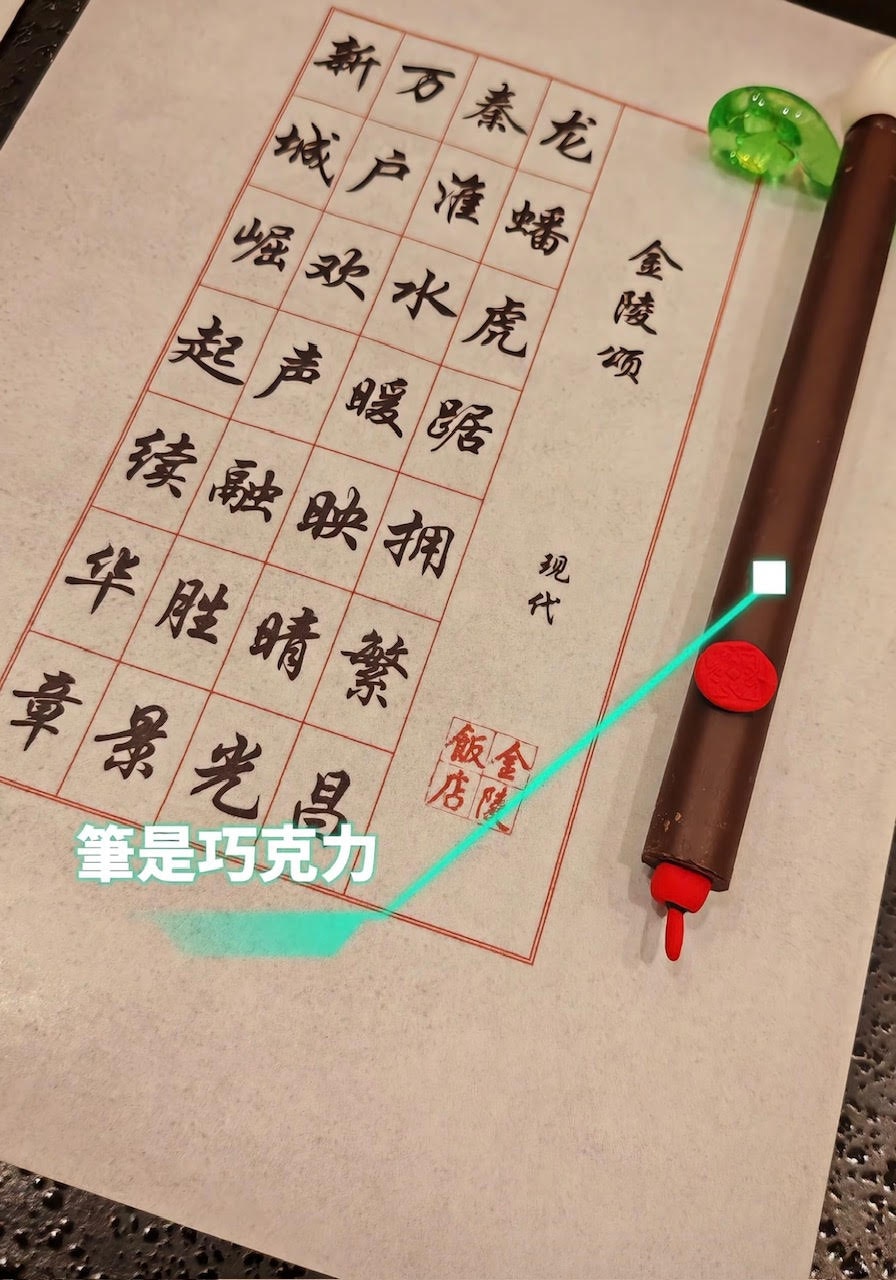 當大家誤以為他真的吃紙,其實所謂的「紙」是一款甜品,真的是用食材製造出來的。他解釋指「筆」其實是朱古力來的,「筆架」是糖來的,「紙」是米紙來的,「字」是墨魚汁寫的,該款甜品非常之特別。