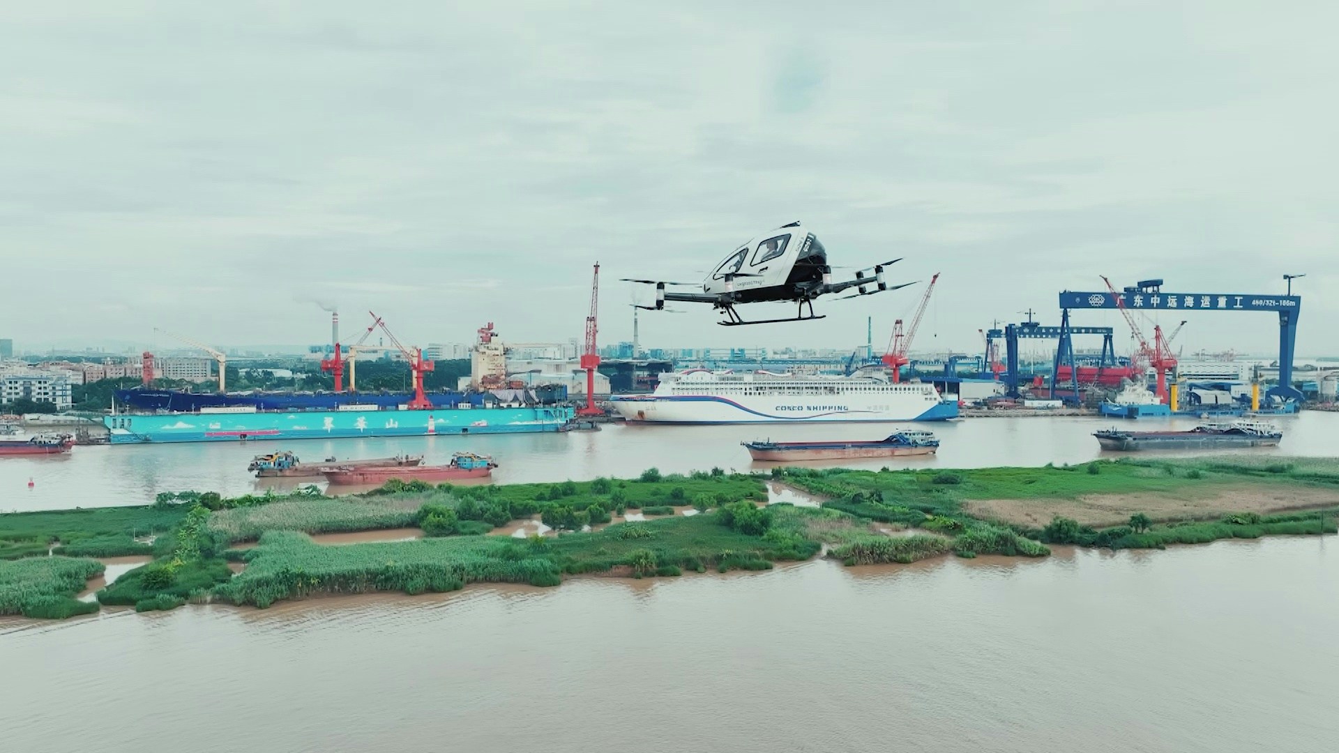 四位姐姐試搭無人駕駛「空中的士」暢遊廣州上空。(官方提供圖片)