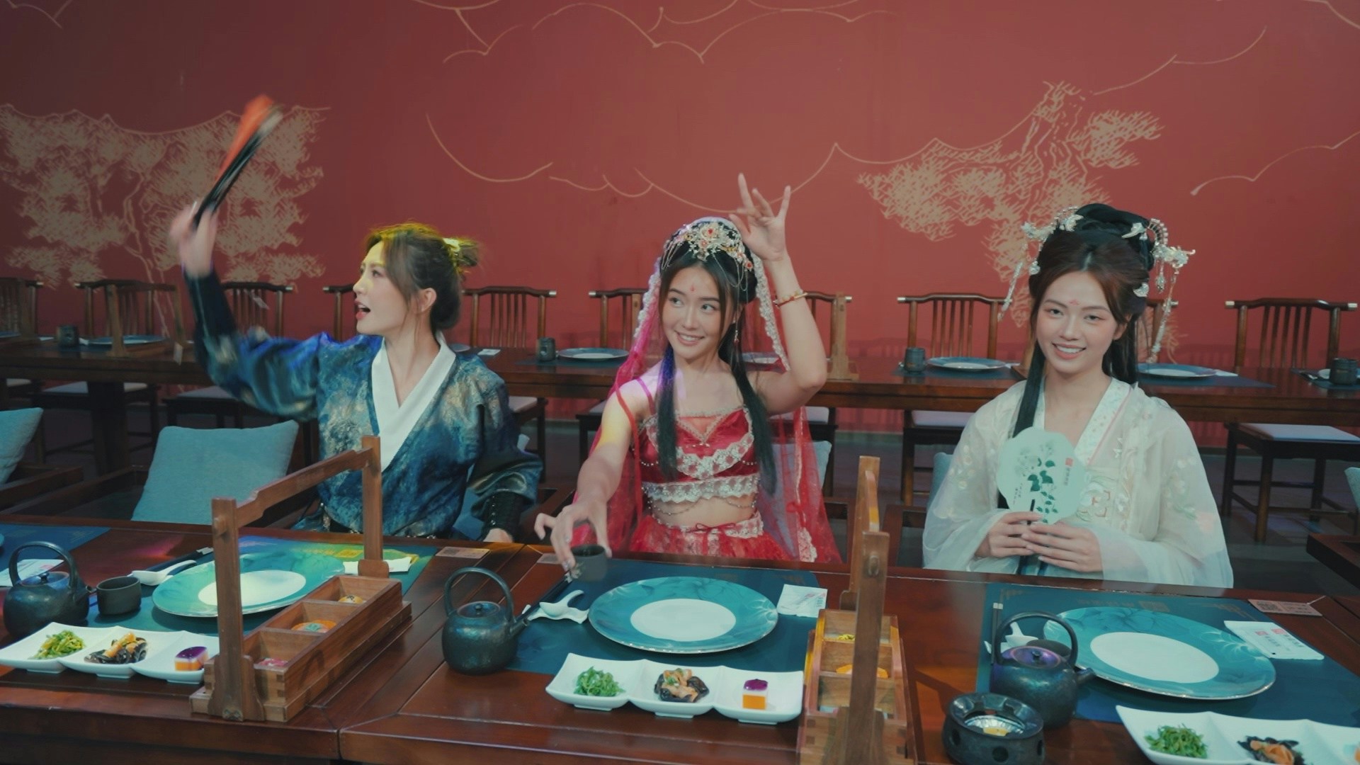 估唔到食餐飯都可以咁有玩味,三位Young Line姐姐吳若希、戴祖儀及游嘉欣,又穿上不同風格的古裝,在一間古色古香的餐廳中大歎宮廷宴。(官方提供圖片)