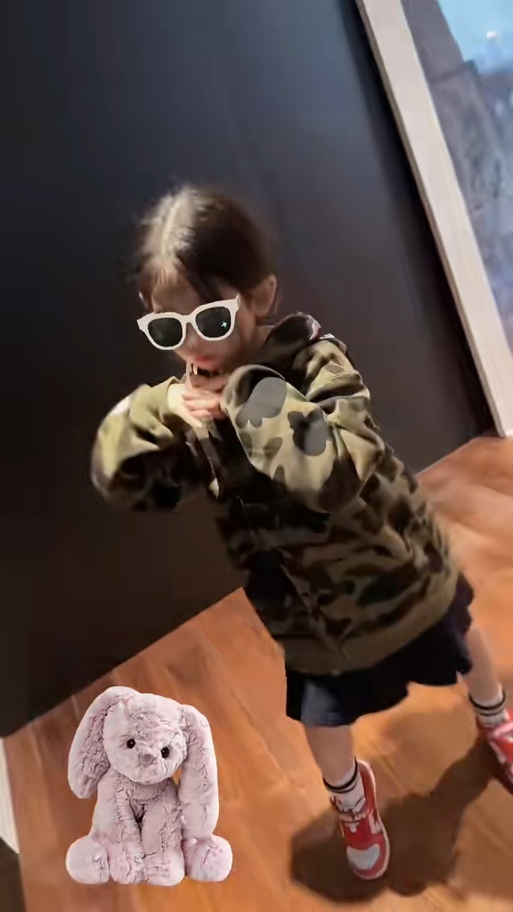 片中可見大女郭詠希穿上粉色上衣配黑色短裙,二女郭泳萱則穿上迷彩上衣配同款短裙,兩人都打扮得好靚女,聽着音樂在大跳女團舞,小小年紀已跳得有板有眼,不論是節奏感還是肢體律動都相當之好,完美遺傳了她們爸爸郭富城的舞蹈細胞,令一眾網民紛紛留言大讚她們很有跳舞天份,甚至可以原地出道。而姊妹們的顏值更是頂級,遺傳了爸媽的優良基因,即使方媛用太陽眼鏡貼紙遮了囡囡的眼睛,仍可看得出來姐姐和妹妹都是美人胚子,姐姐就是迷你版方媛,妹妹則比較似郭富城。