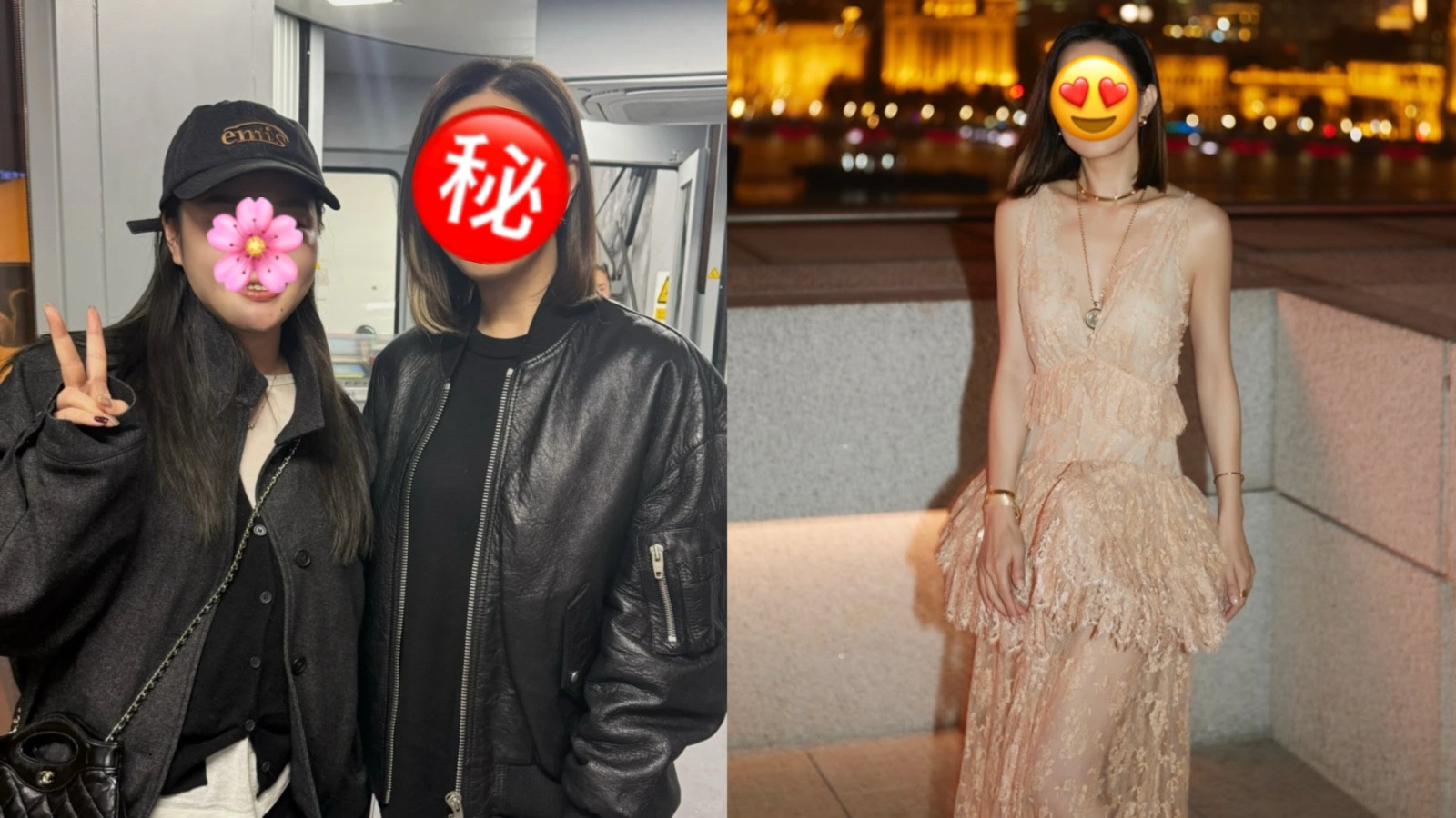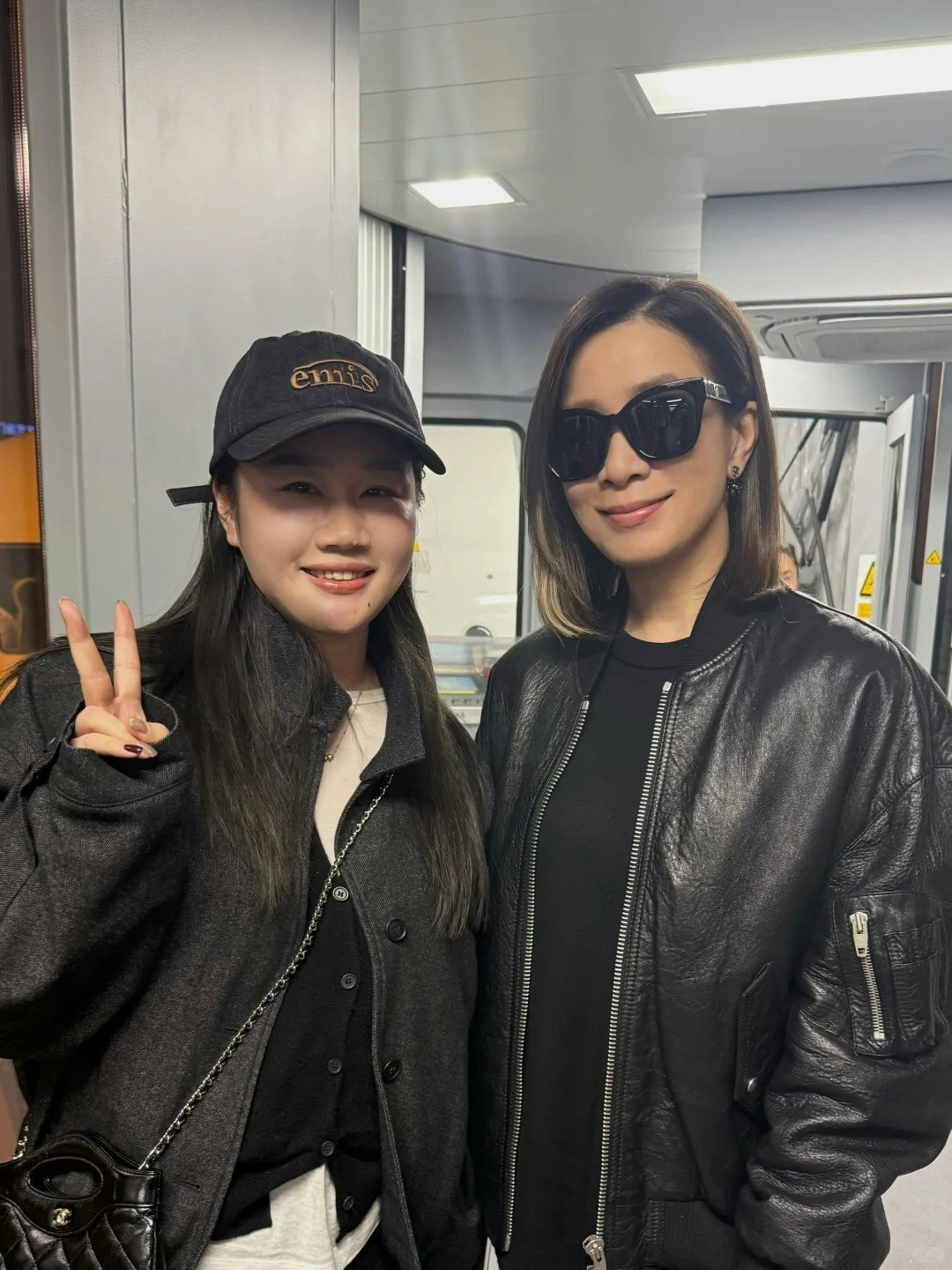 佘詩曼在飛機上被認出,友善與對方合照。(小紅書圖片)
