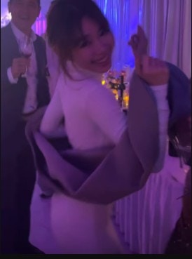 相中可見,林明禎穿着了她於2024年賀三弟結婚時所穿的白色禮服,事隔兩年她再穿此戰衣賀四弟結婚,足見她對兩個弟弟一視同仁,也盡顯她的慳家本色。林明禎所穿的白色禮服剪裁貼身,加上露側腰的設計,完美呈現她的S型出眾身材,性感迷人。林明禎見到一對新人進場時,已不禁感動落淚。當她弟弟抱起新娘時,林明禎就忍不住尖叫,她寫道:「 HuiHui太美了,喊到喉嚨破掉,哭到我,要幸福!看到很激動」。而在婚禮後,林明禎就與家人一起跳舞狂歡,玩得相當開心。