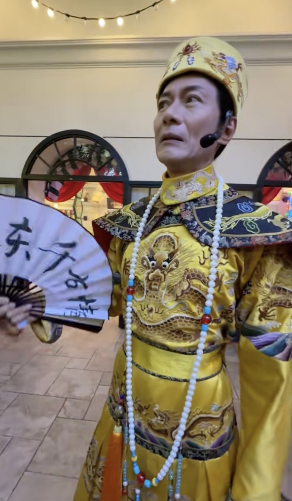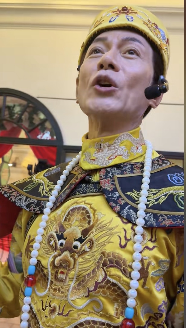 有人上載江華在千古情扮皇帝的片段,他提到不想在片尾出場,疑似在說電影版《尋秦記》。(抖音)