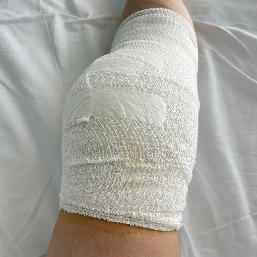 譚玉瑛話包紮得好似大件事,但其實係步向完全康復。(facebook@譚玉瑛)