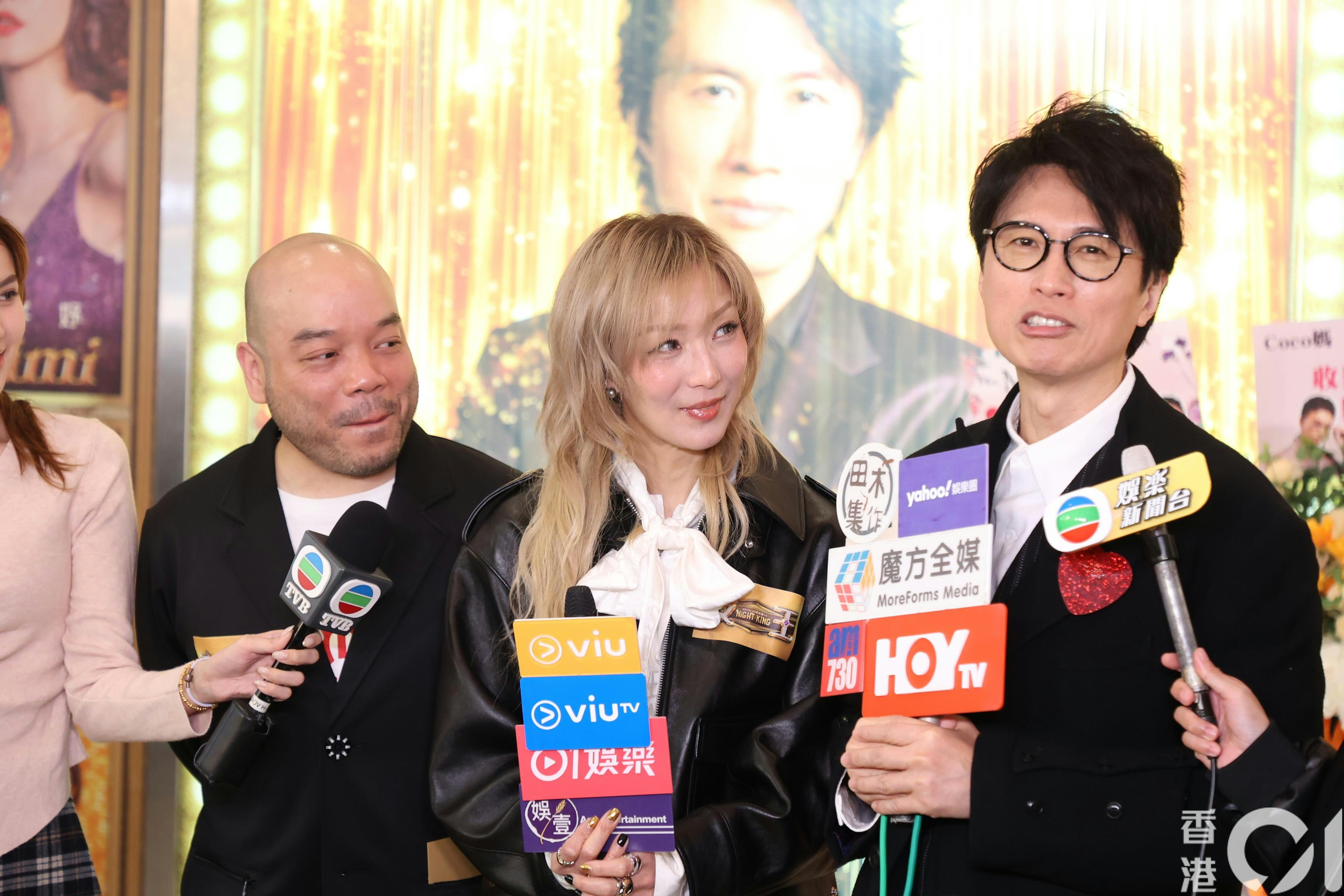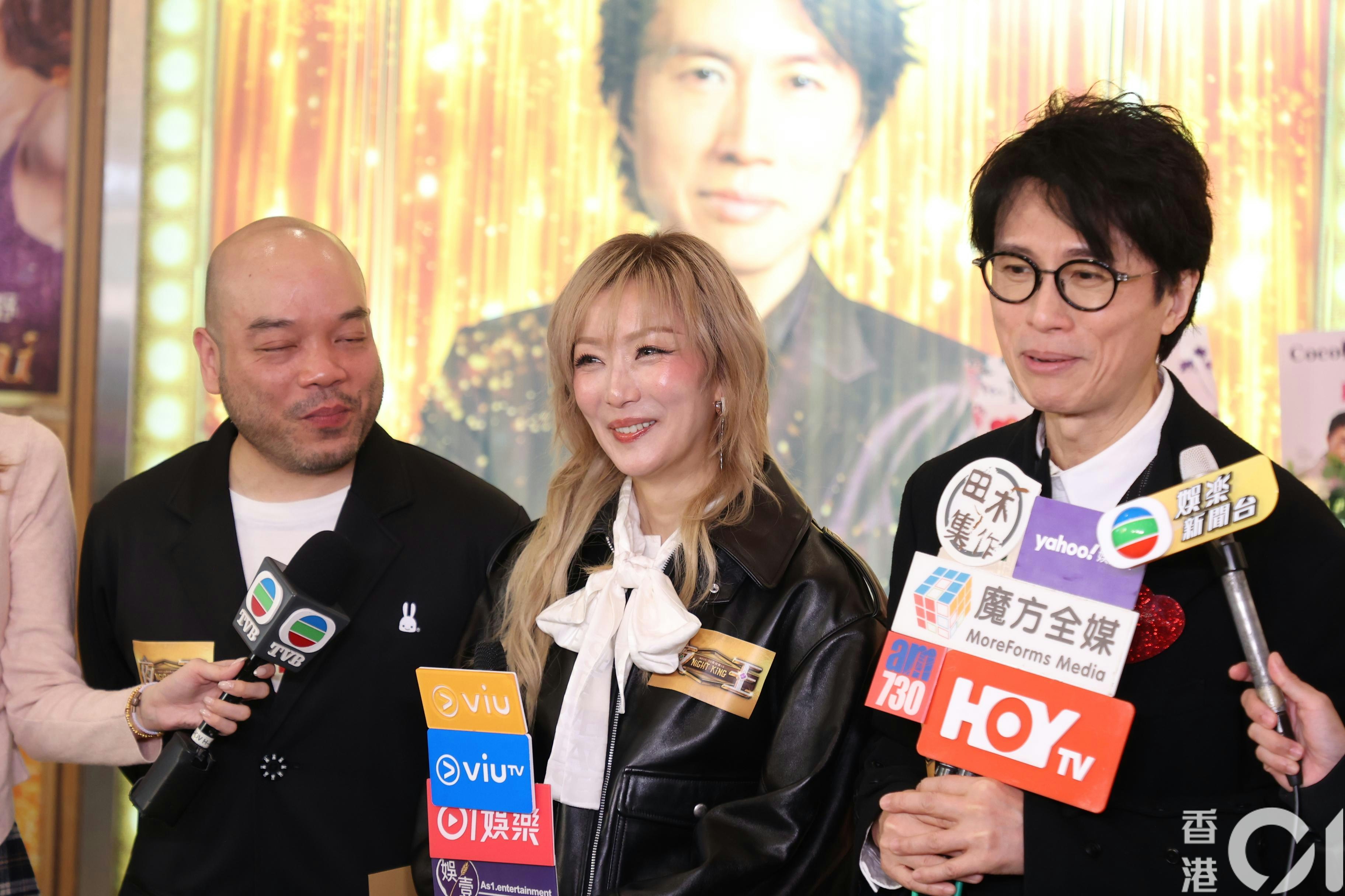 《夜王》導演吳煒倫、鄭秀文、黃子華於活動上接受傳媒訪問。(葉志明 攝)
