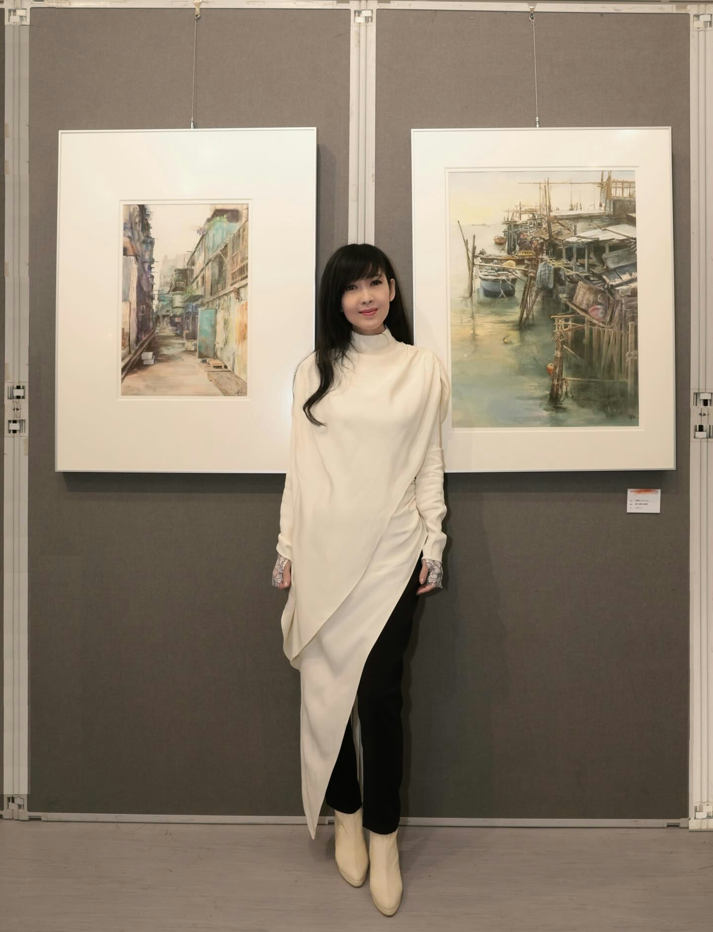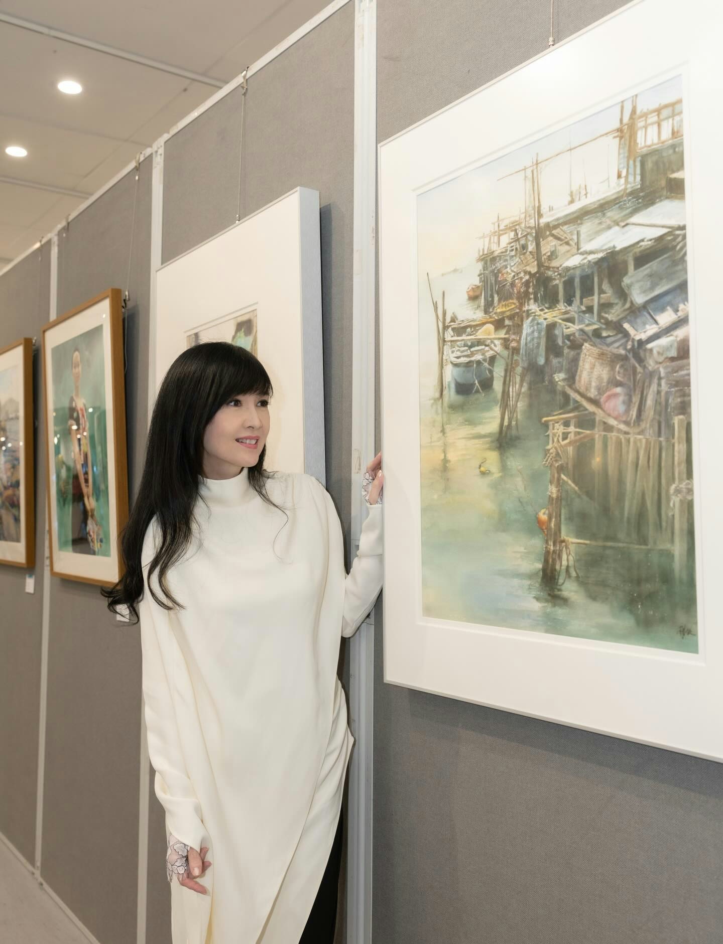 周慧敏分享開幕禮照片,並寫道:「抱歉本人沒有預早告知大家,連朋友都沒有告知,因為有點社恐,只能專心完成今日的開幕禮,再慢慢寫個post與大家分享。衷心感謝大會籌劃人廖小平老師的賞識,邀請我以水彩愛好者之姿參與是次展覽。此次匯集三十多國、六十多位畫家之作,好榮幸我能作為香港的一份子參與。得以近距離欣賞多位名家真跡,讓我大開眼界同時,也上了好好的一課。兩幅參展作品《後巷》與《舊居》,記錄了二十幾年前的香港景象,如今景物雖在,卻已滄海桑田。很慶幸能以繪畫形式留存這份屬於我們的集體回憶。今日在展場聆聽多方分享,心裡火熱,期盼自己在步人生新階段時,再有新作品見大家。❤️」