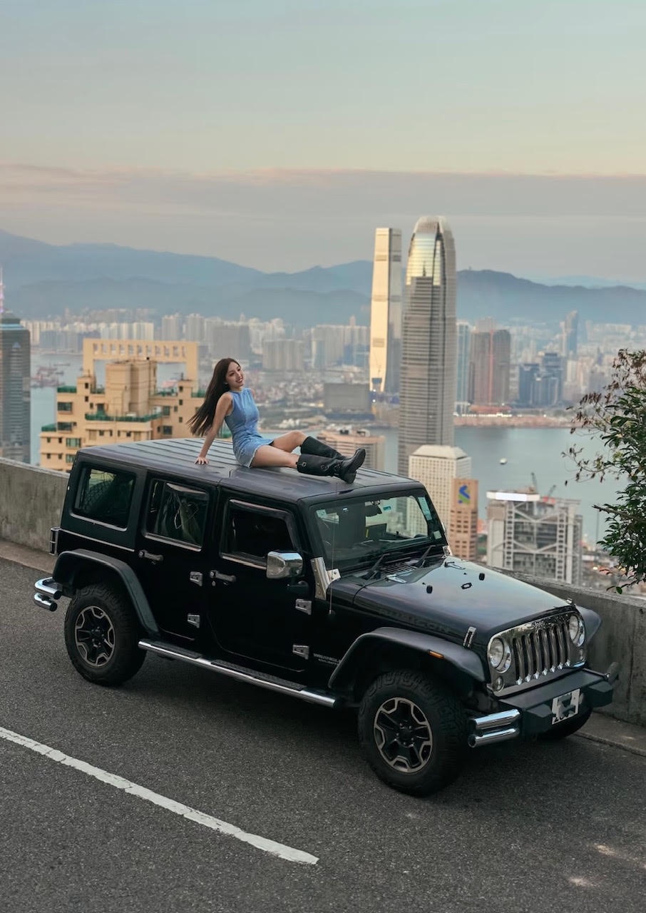 不時在社交平台上貼性感照的海兒,近日就上貼多張身穿淺藍色背心搭配超短裙,大展白滑長腿的美照,還相當大膽地爬上愛車車頂,以香港迷人的城市天際線作背景,擺出性感誘人Pose,相當漂亮。 除此之外,她還在車內擺出多個pose,時而甜笑向外望,時而側頭靠下對鏡微笑等,每一個畫面猶如在拍寫真般,根本是360度零死角。