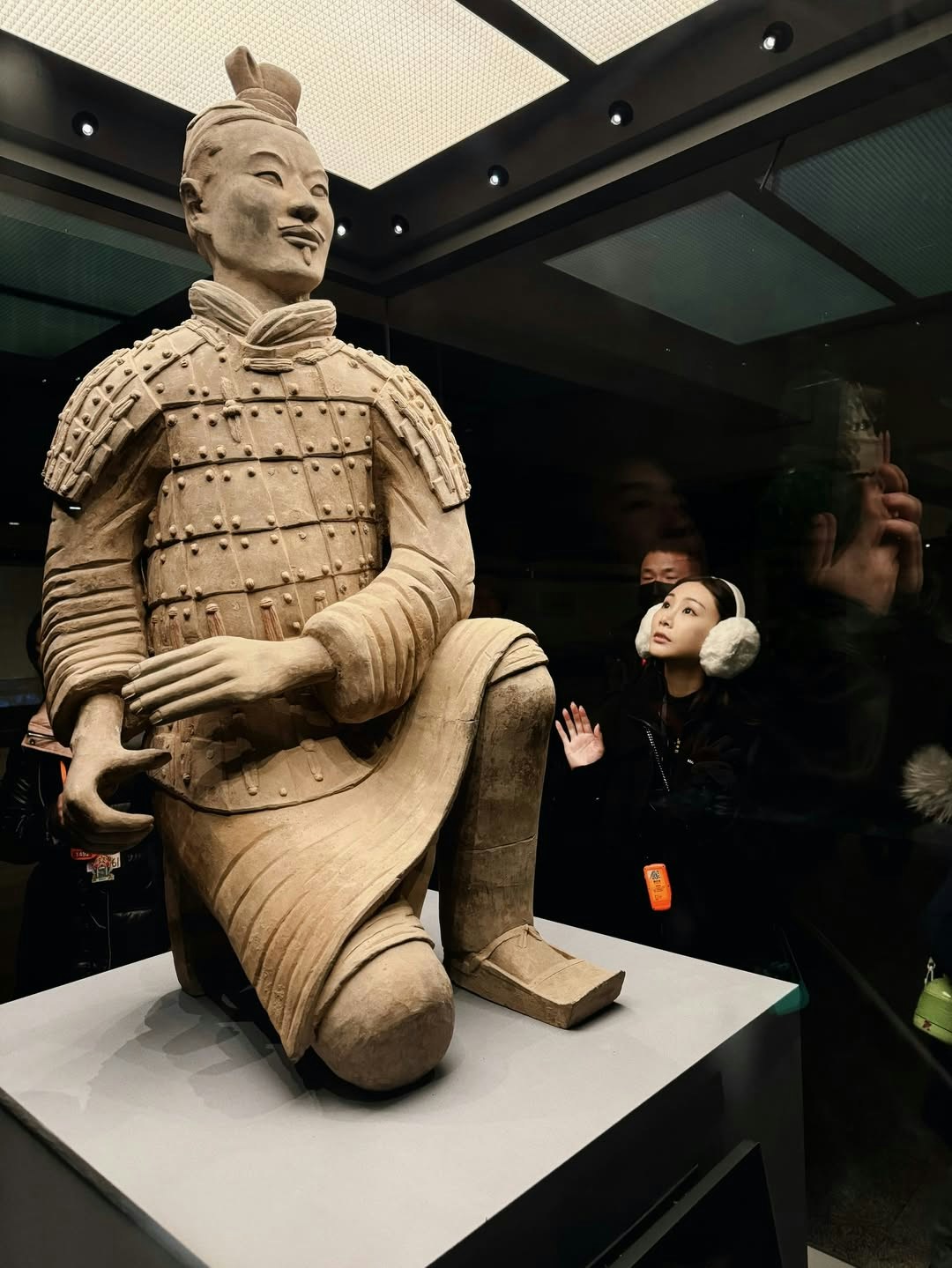 陶枳樽似乎非常仰慕跪射俑。(陶枳樽IG圖片)