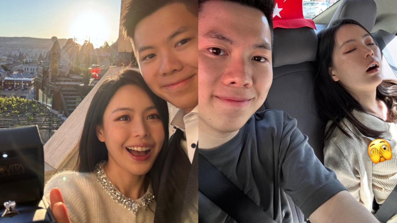 林婷婷貼出兩人在土耳其熱氣球聖地卡帕多奇亞(Cappadocia)拍攝的求婚照。照片中,林婷婷展示手上閃爆又大粒的鑽戒,可見男方誠意十足,兩人頭貼頭自拍,臉上洋溢著幸福笑容,場面既浪漫又溫馨。