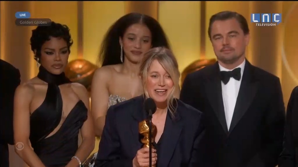 12:10 保羅湯瑪士安德遜作品《一戰再戰》榮獲「喜劇或音樂劇類型最佳電影」大獎,導演攜同里安納度狄卡比奧、辛潘等一眾演員上台得獎。