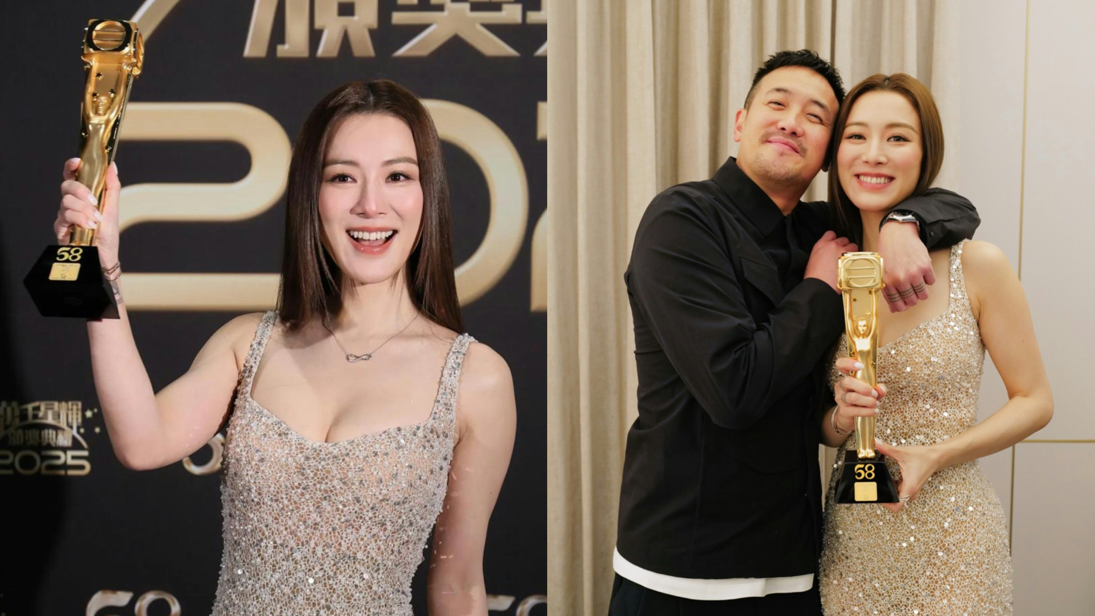 她貼出多張頒獎禮當日的照片,包括與同劇視后佘詩曼、前兩屆最佳女配角高海寧的合照,亦有李施嬅、頒獎嘉賓張兆輝及劇組人員,但不得不提的是老公曾國祥!曾國祥在後台搭住她膊頭,二人面露幸福笑容,激罕放閃。王敏奕與曾國祥於2019年結婚,但婚後甚少公開合照、被指聚少離多,王敏奕更一度被指因洗走手指上愛的紋身而惹來婚變揣測;不過她其實已親自闢謠,指純粹因為拍劇要遮紋身,即使與老公分隔兩地但都一直保持溝通,絕少吵架。