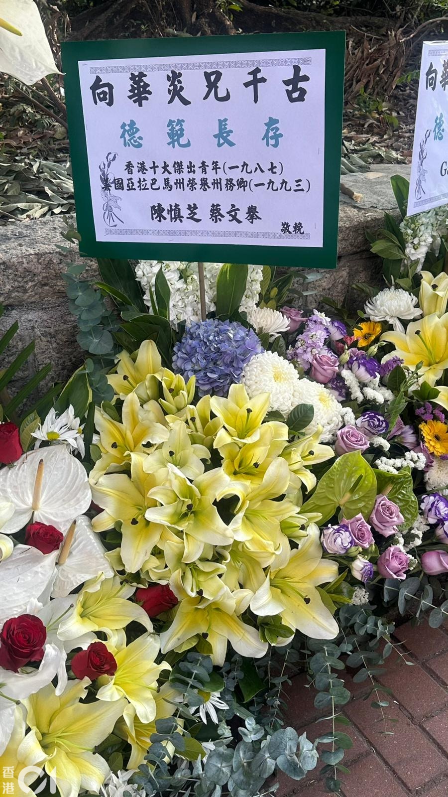 下午1時許向華炎家人神情哀傷,一早到場打點,靈堂內佈滿鮮花,氣氛莊嚴而肅穆,向華炎生前人緣極佳,獲不少江湖中人送上花牌,其中包括《慈雲山十三太保》原型人物陳慎芝。殯儀館外馬路旁亦一片花海、表達深厚情誼,以及無盡懷念。警方在殯儀館外劃出指定區域,要求所有到場悼念人士先到該處登記,方可依指示排隊入場,過程包括核對身份及簡單資料紀錄。