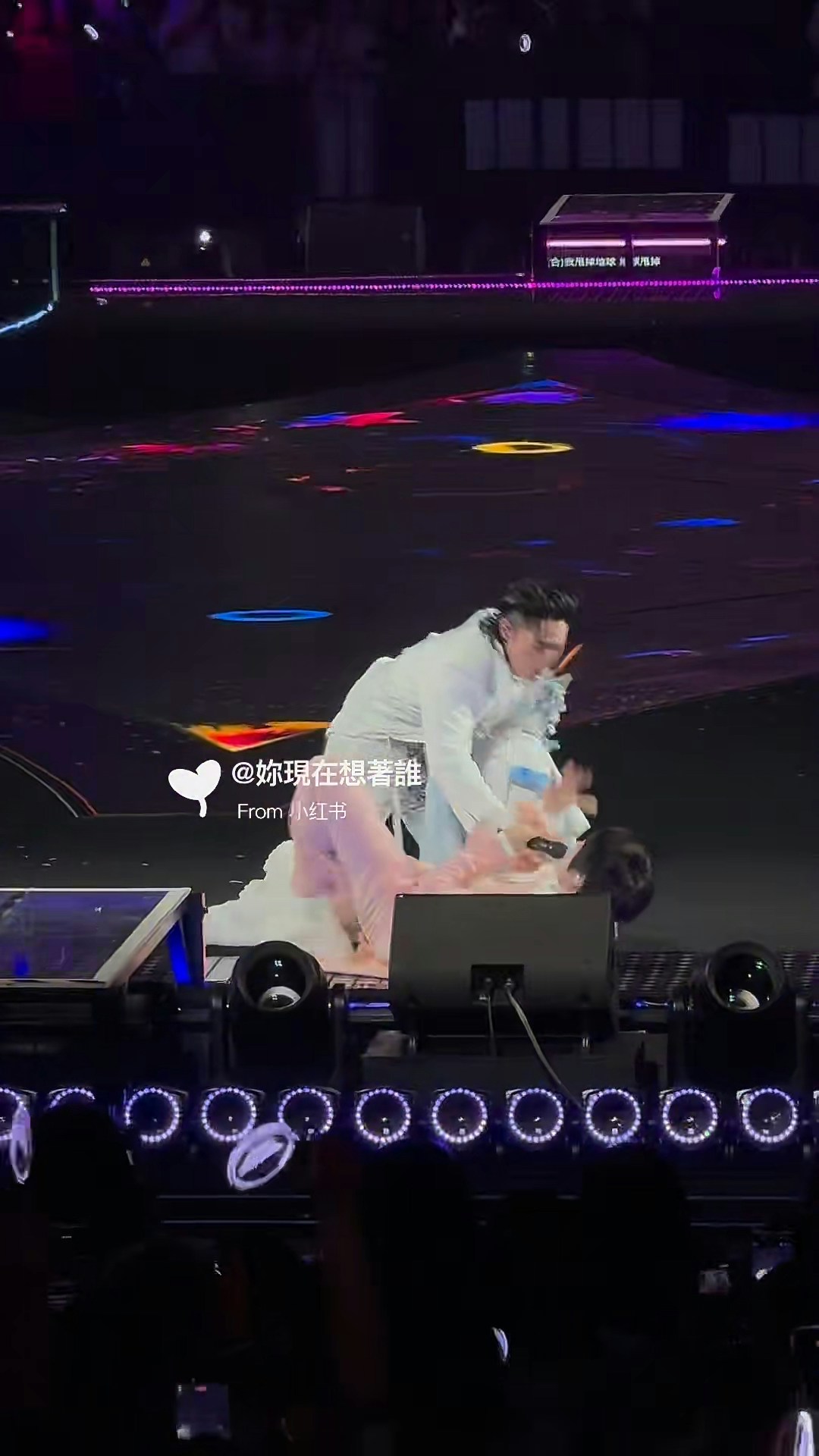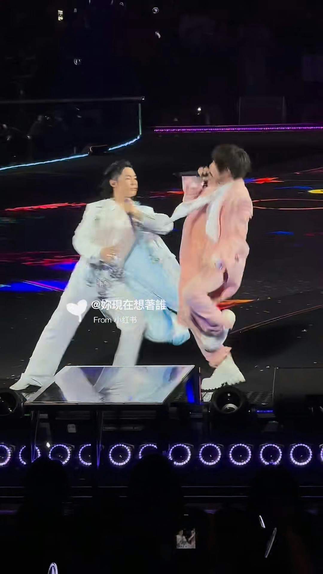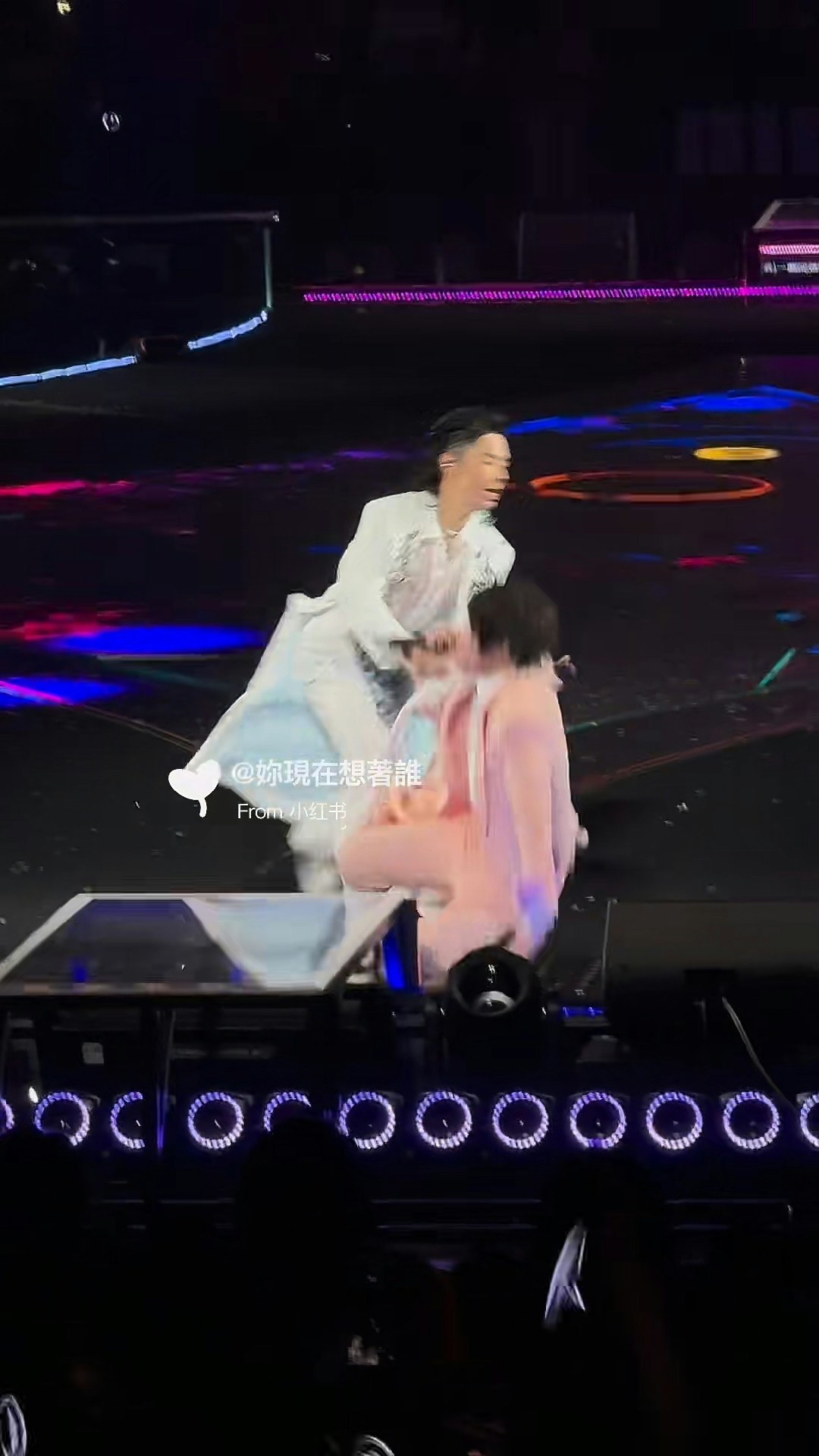 阿信又差啲跌落台。(小紅書圖片)