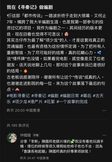 提到電話,近日有電影版《尋秦記》的編劇在網上分享了「李斯」陳國邦在片場的真實一面,或許解釋了為何他的自拍設備如此「落後」。該編劇直言:「我沒有看他玩過手機,埋位的時候等很久場務給他椅子他也不坐,因為『會讓長袍起皺』,陳國邦真的好專業很帥氣!」在這個電話不離開手的世代,這份敬業樂業的精神令人肅然起敬。