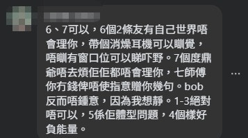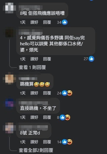 面對這份堪稱「地獄級」的乘客名單,絕大部份網民的反應相當激烈且崩潰,經過深思熟慮後,網民一面倒將票投給了Bob。對於Bob以外的7個選項,留言區充斥著恐懼與拒絕,大部分人直言看到名單已經感到窒息,紛紛留言表示:「有無得改航班?」、「我寧願退票唔飛」、「直接跳機好過」。尤其是涉及近日新聞人物或出名噪吵的藝人,更是令人避之則吉。