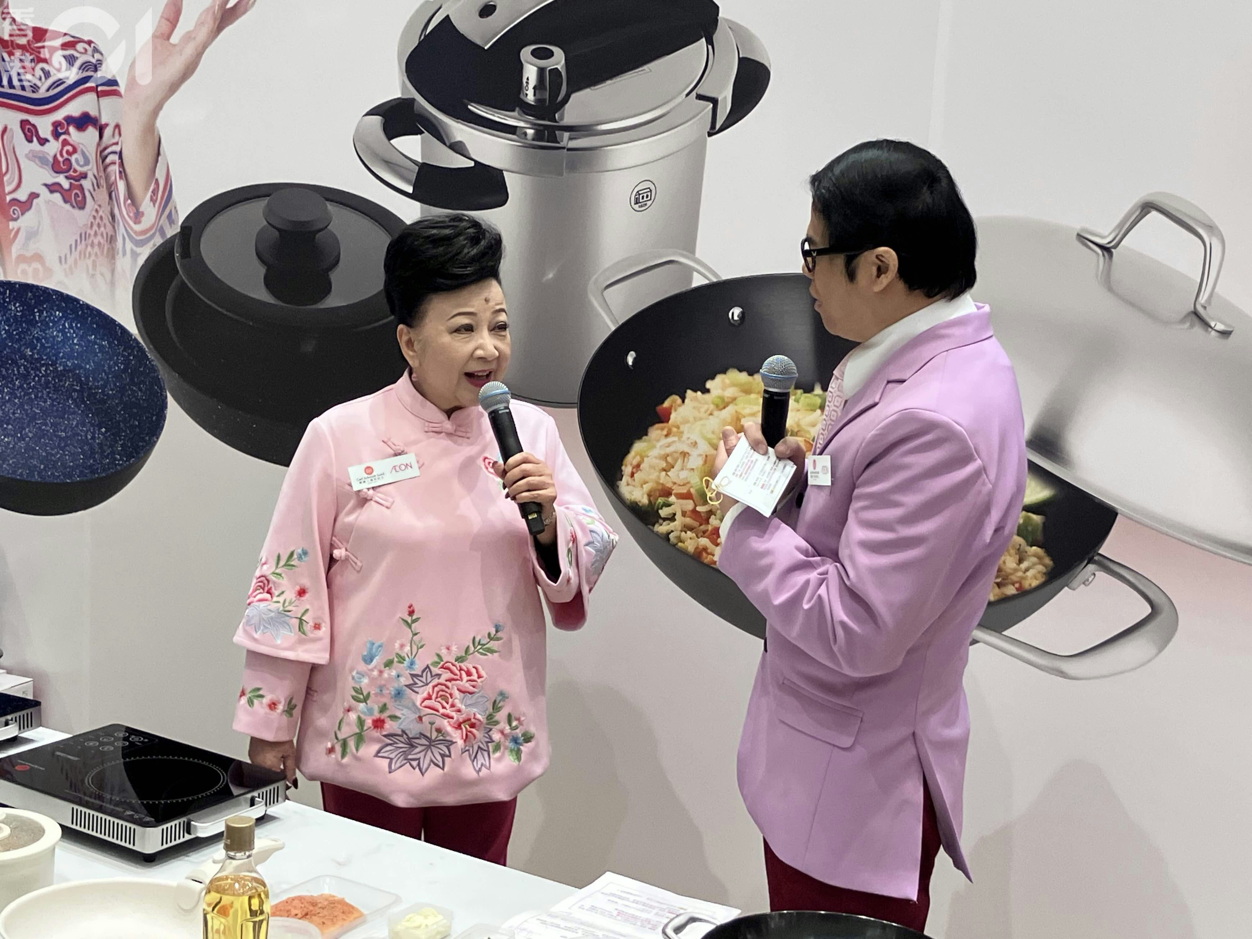 薛家燕(家燕姐)出席廚具品牌的商場活動,安德尊任主持。(林迅景 攝)