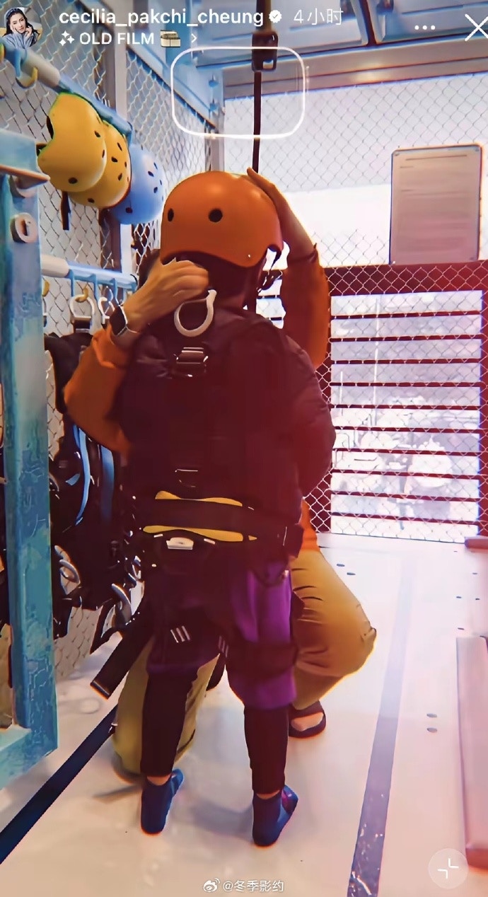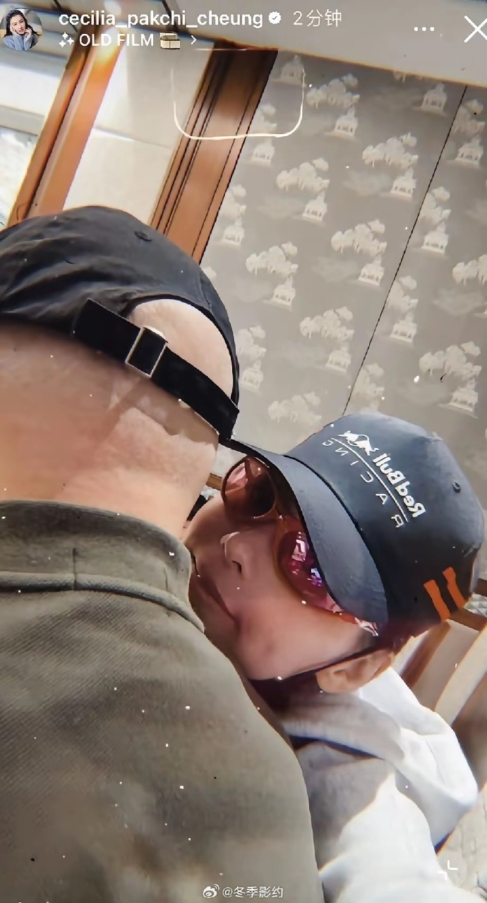 在張栢芝分享的照片中,她身穿衛衣、頭戴Cap帽及紅色太陽眼鏡,整個人依偎在一名男子的肩膀上。而同樣戴著Cap帽的男子僅僅露出後腦勺,從背影看年紀似乎不輕,兩人如此親暱的行為,相信關係匪淺。