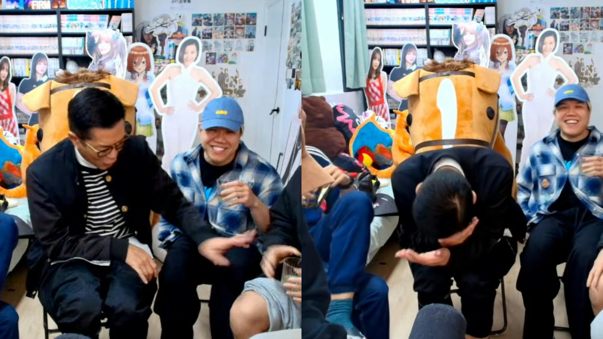在強烈的壓力與酒精催化之下,成員終於豁出去,對著古天樂突擊追問:「鹹片睇唔睇㗎?」此話一出,全場氣氛即時爆炸,連古天樂都反應不及。他先是驚訝得張大嘴巴大叫一聲:「嘩!」隨即整個人尷尬得低頭大笑,更一度害羞得用手掩面,完全無法直視鏡頭。
