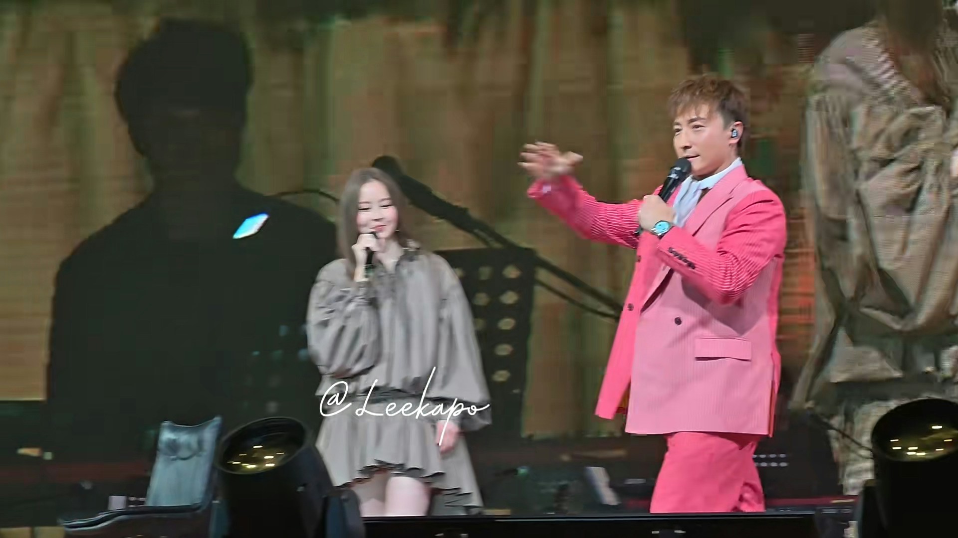 除了一家人的溫情時刻,演唱會另一高潮莫過於請來多年沒見面的 Theresa傅穎(現改名傅寶誼)擔任嘉賓。兩人相隔20年再度同台合唱《自欺欺人》,這段「世紀合體」瞬間引起全場尖叫,網民直呼:「童年回憶返晒嚟!」Theresa 當晚打扮相當吸睛,更笑言自己很久沒有露腿,要在演唱會「露過夠」。除了經典作,Theresa 亦首度現場演繹尚未正式錄音的新歌《成年禮》,不過唱功似乎仍有很大進步空間。
