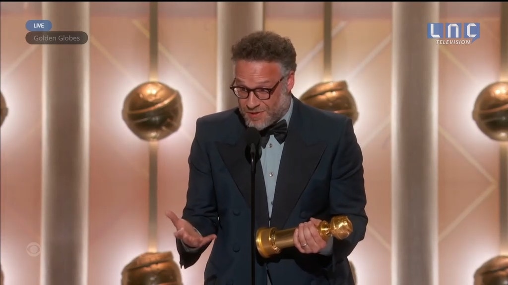 Seth Rogen憑《The Studio》奪得「電視音樂或喜劇類型最佳男主角」獎。(直播截圖)