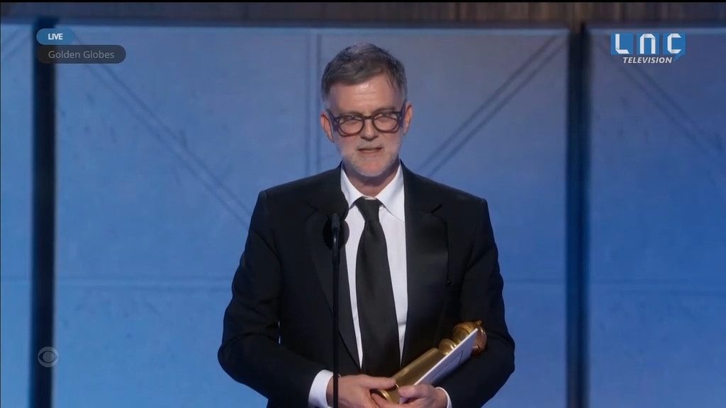 保羅湯瑪士安德遜憑《一戰再戰》奪得「最佳電影編劇」獎。(直播截圖)